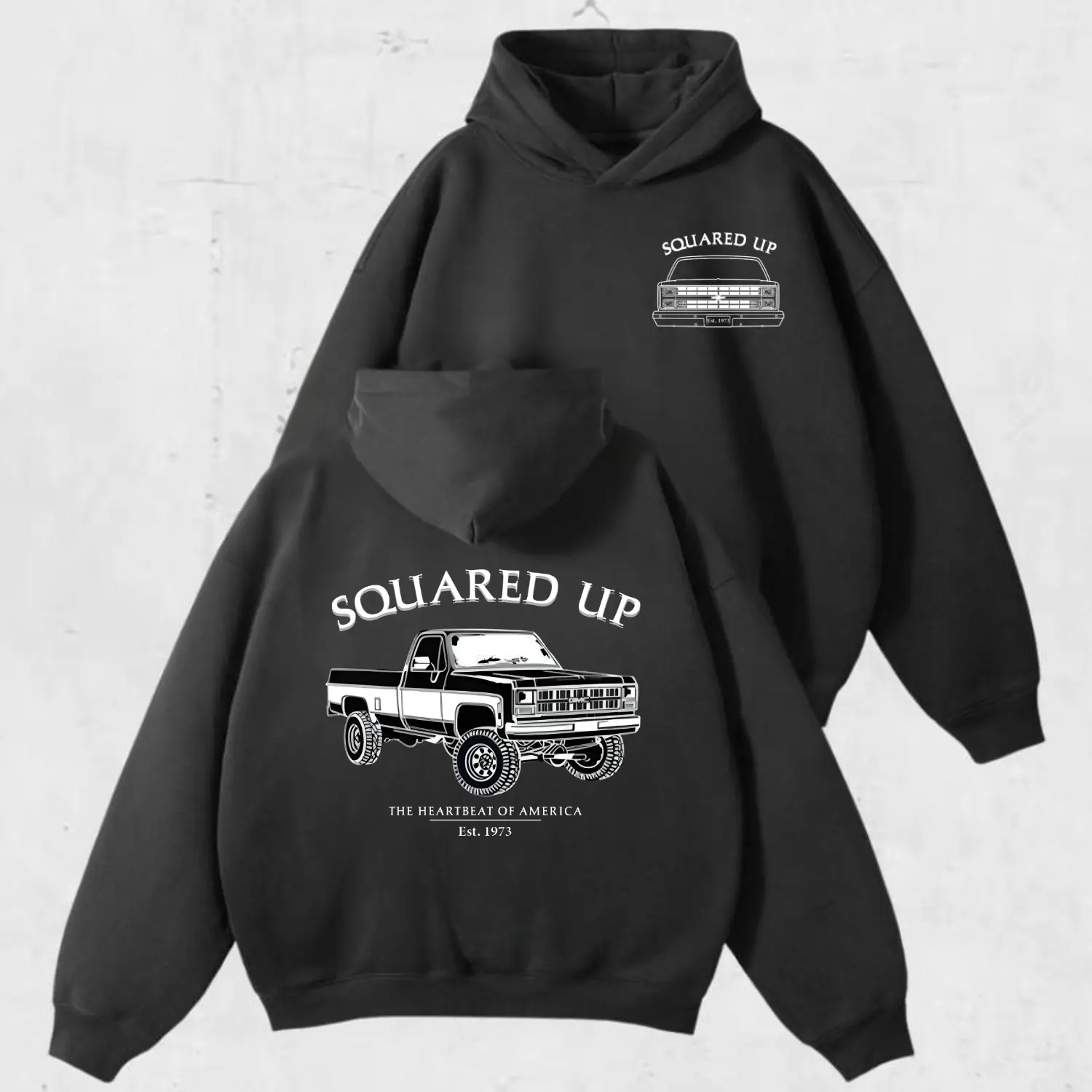 Chevrolet Square Body Truck Hoodie, Sweatshirt, T-Shirt, Vintage 2-Sided Graphic, Classic Truck Gift, Chevy Truck Heartbeat of America EST 1973, Father's Day Gift for Dad Gift for Him for Husband