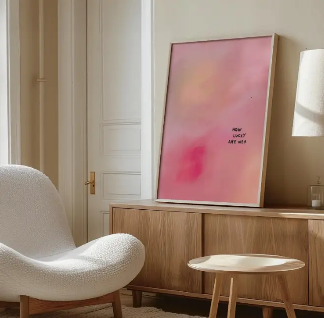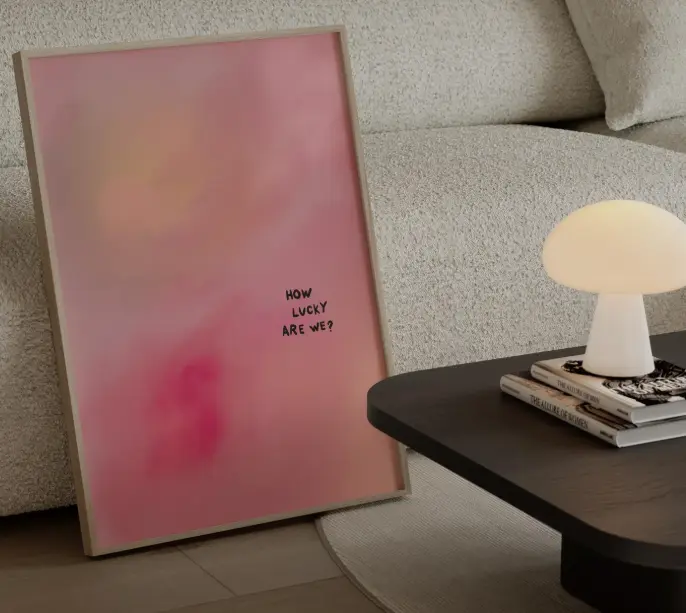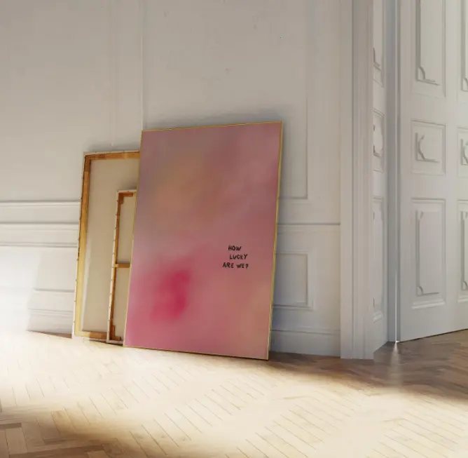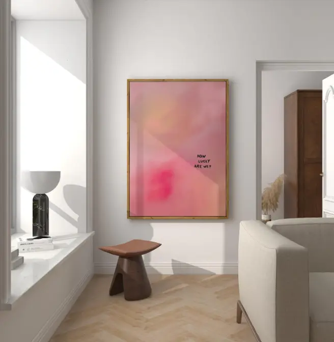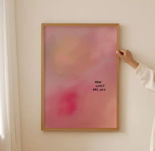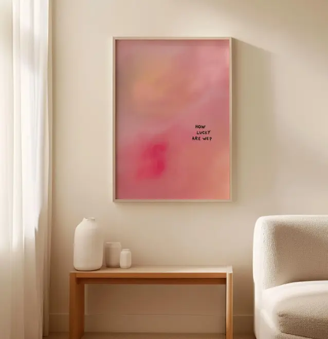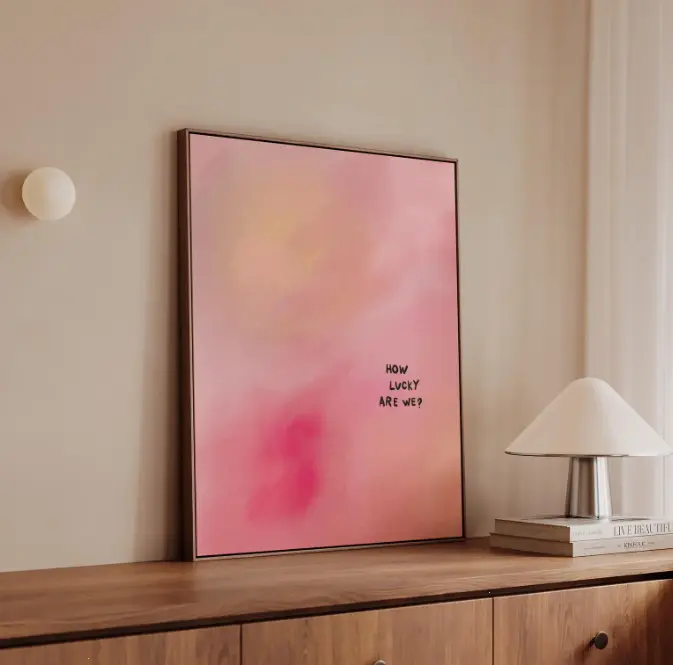 How Lucky Are We Canvas Print, Minimalist Pink Gradient Art Print, Unframed Canvas