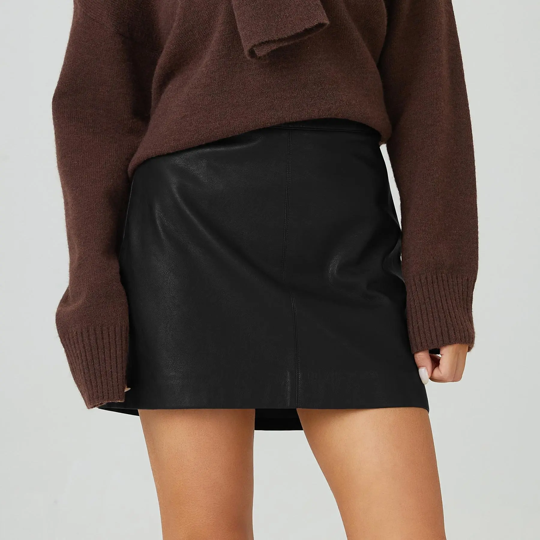 Details: Solid color, High waist, Soft PU fabric, A-line silhouette