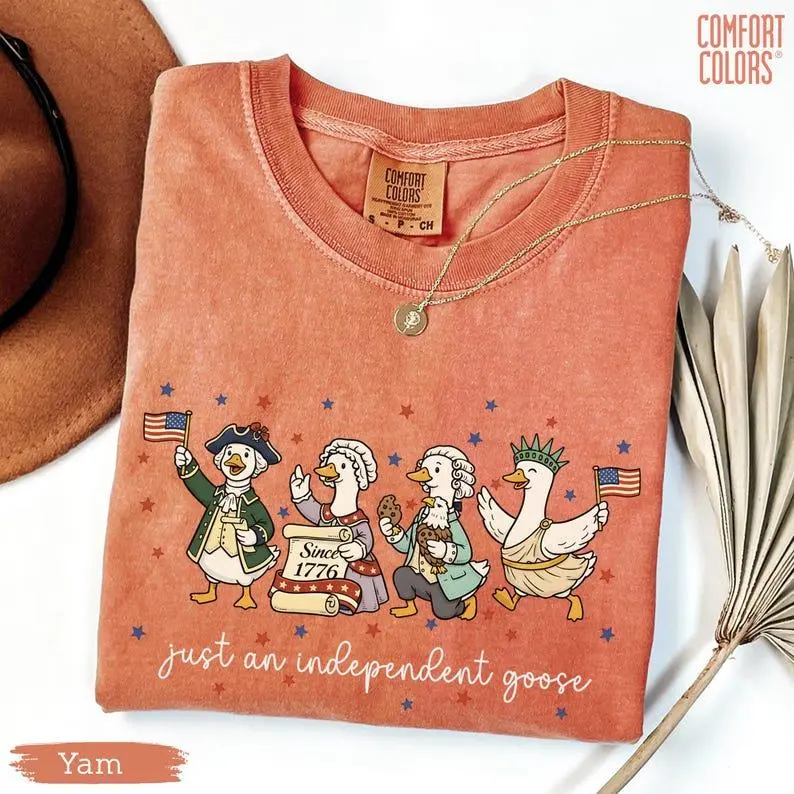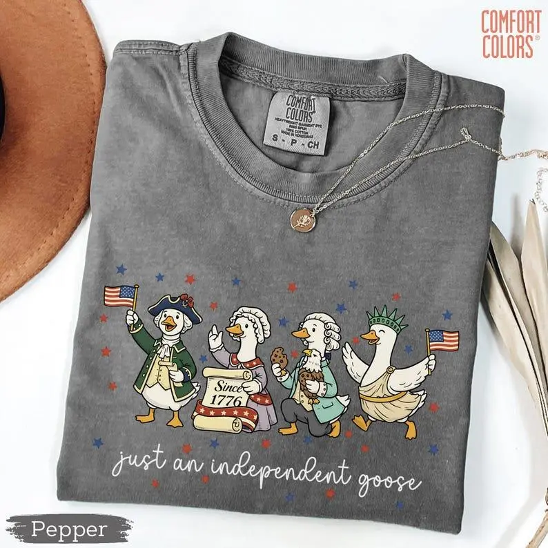 5. Just An Independent Goose 1776–2026 T-Shirt, Funny Patriotic Goose Graphic Tee, USA 250 Anniversary Shirt, Vintage 4th of July Outfit, Unisex Gift (100% Cotton)