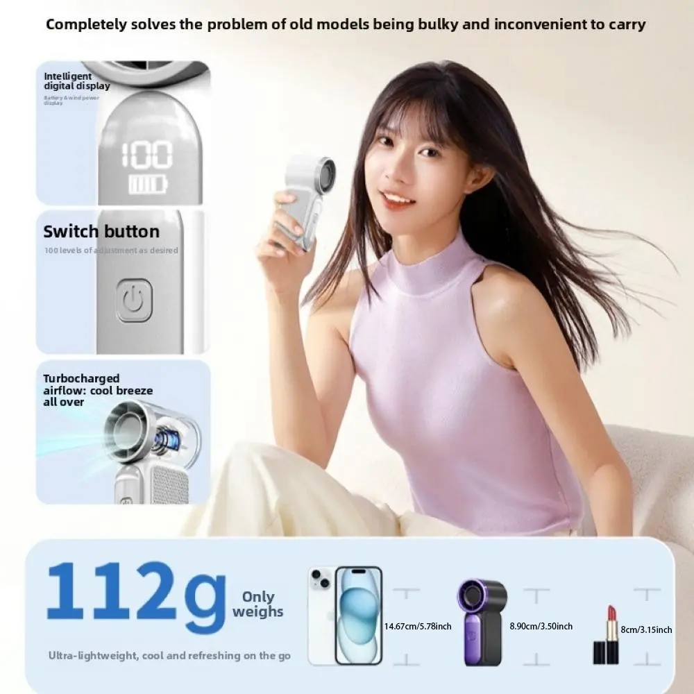 1Count N68 Handheld Fan Portable Turbo Fan Air Cooler 100 Wind Speeds Adjustment High Speed Fan