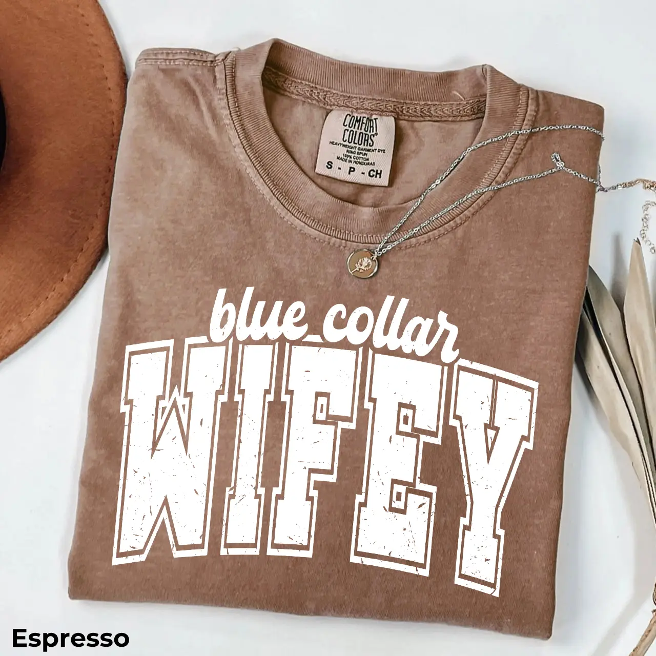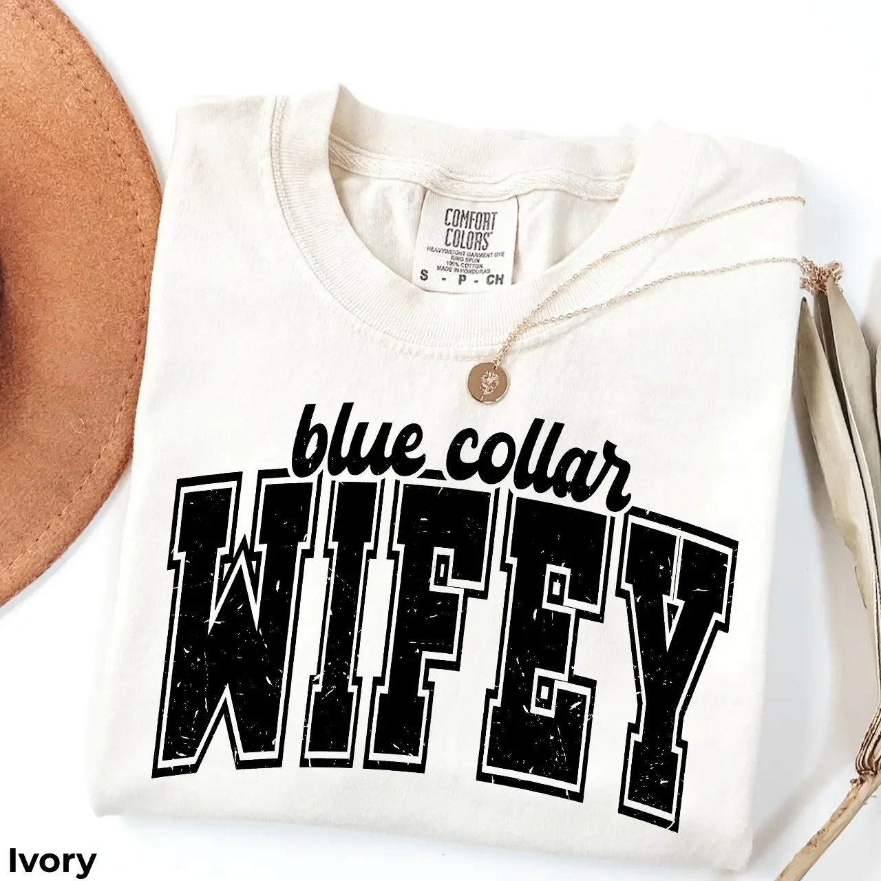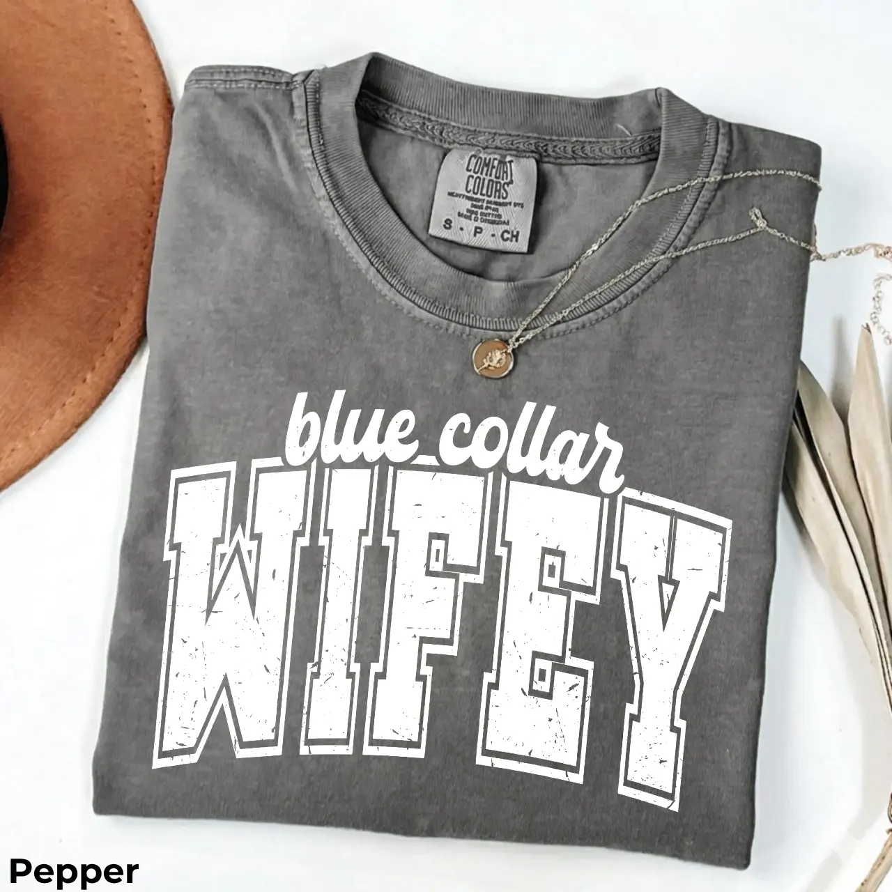 Blue Collar Wife Comfort Colors T-Shirt - Vintage Preppy Trucker Wifey Tee, Construction & Plumber Wife Shirt, Country Girl Aesthetic Tee
