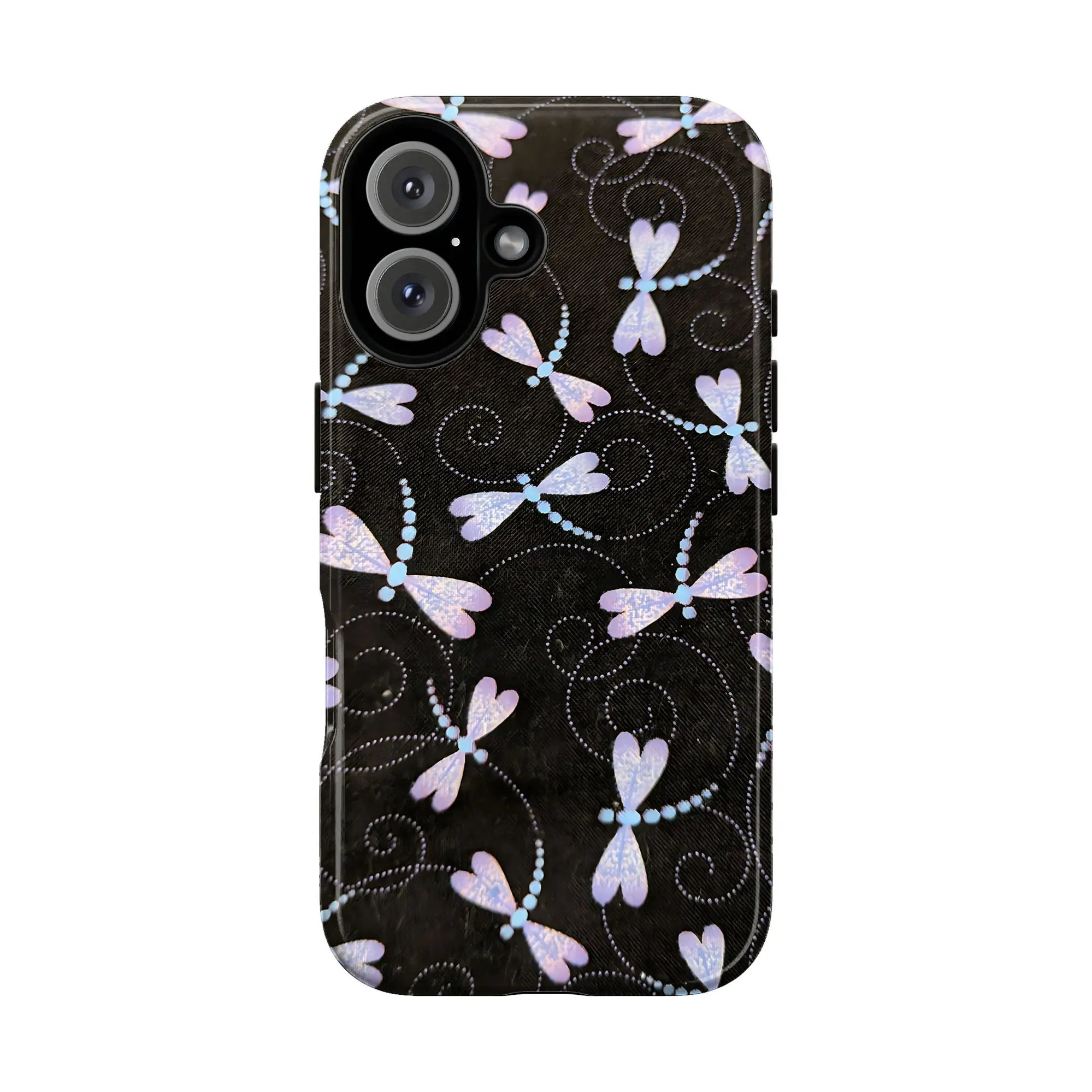 This phone case combines art with functionality. The dragonfly and butterfly motifs bring a vintage charm. Ideal for those who appreciate artistic designs. No additional features or materials are specified.