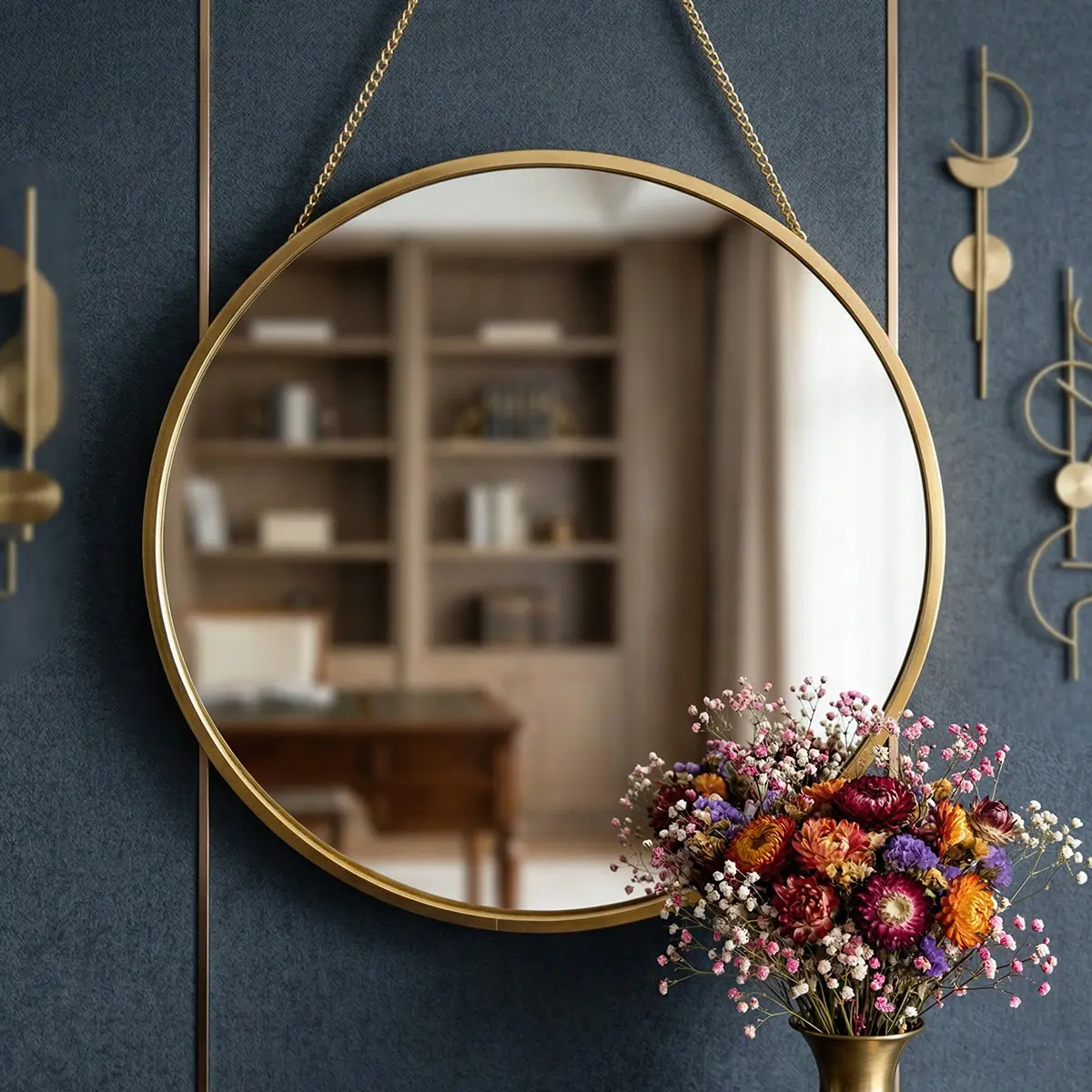 European Style Wall-Mounted Round Decorative Mirror, Resin Material, Bathroom Vanity Decoration, Home Art Accessory, Gift Idea