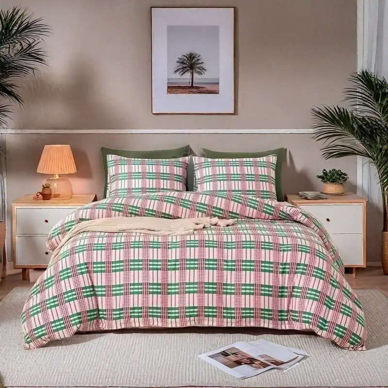 【Checkerboard Pattern】: Features a unique checkerboard geometric print, adding a distinctive touch to your bedroom decor.