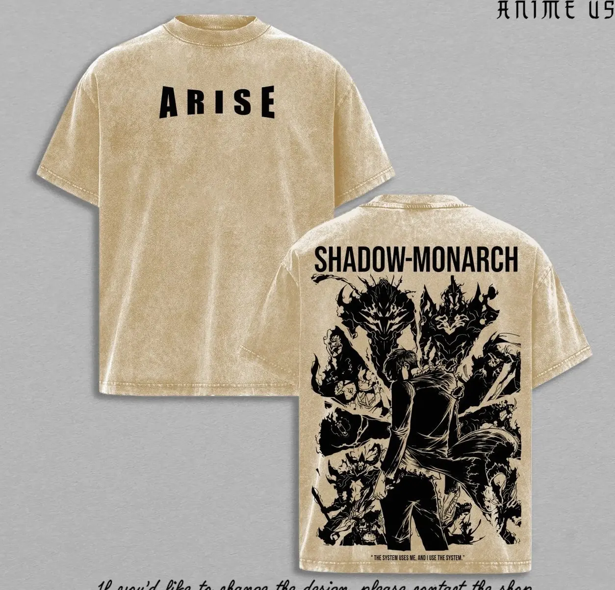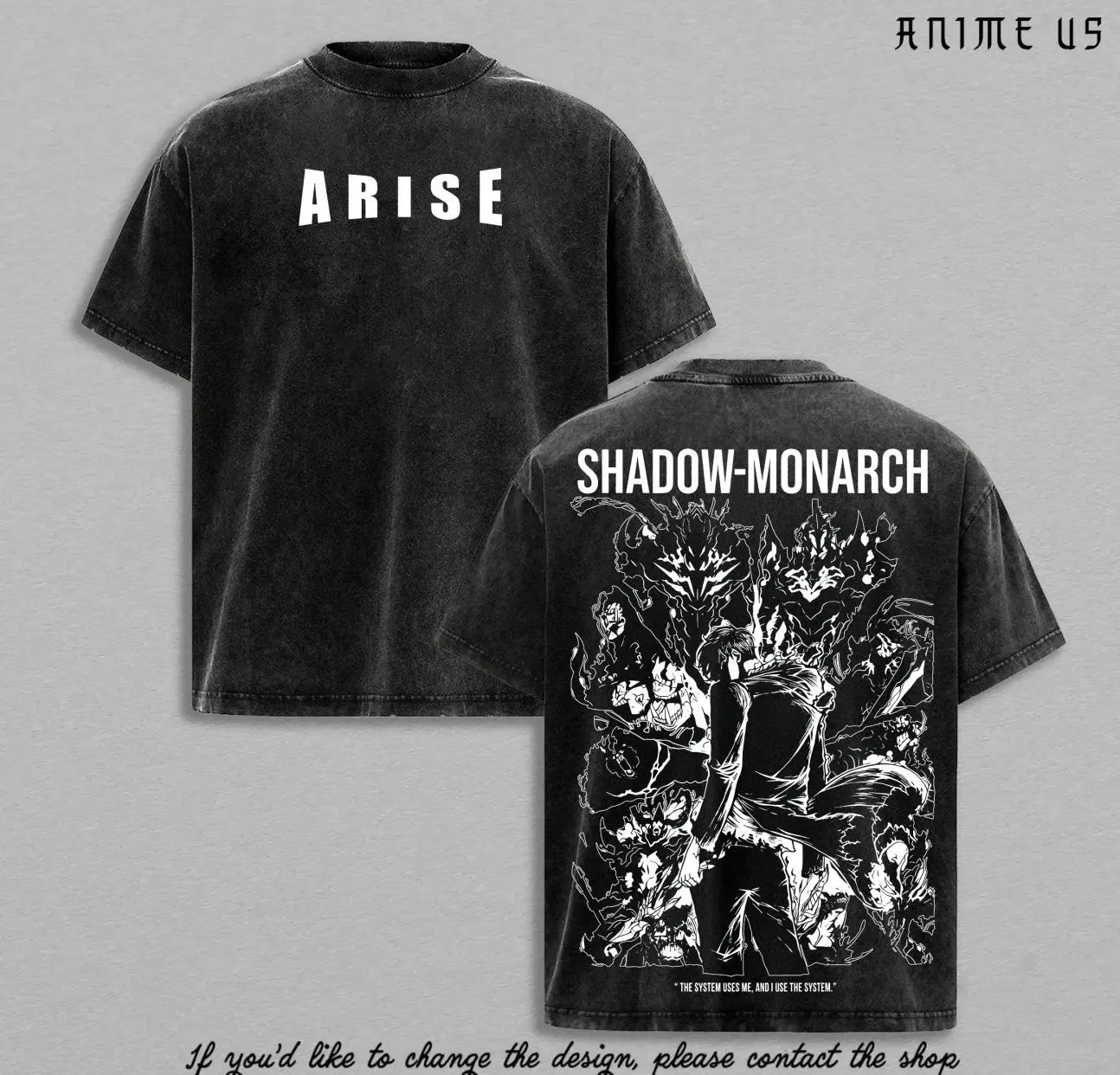 Solo Leveling Sung Jin Woo Shadow Monarch Shirt Vintage Washed Oversized T Shirt Anime Graphic Back Arise Streetwear Heavy Cotton Tee Manhwa Fans Unisex Gym Pump Cover VJH