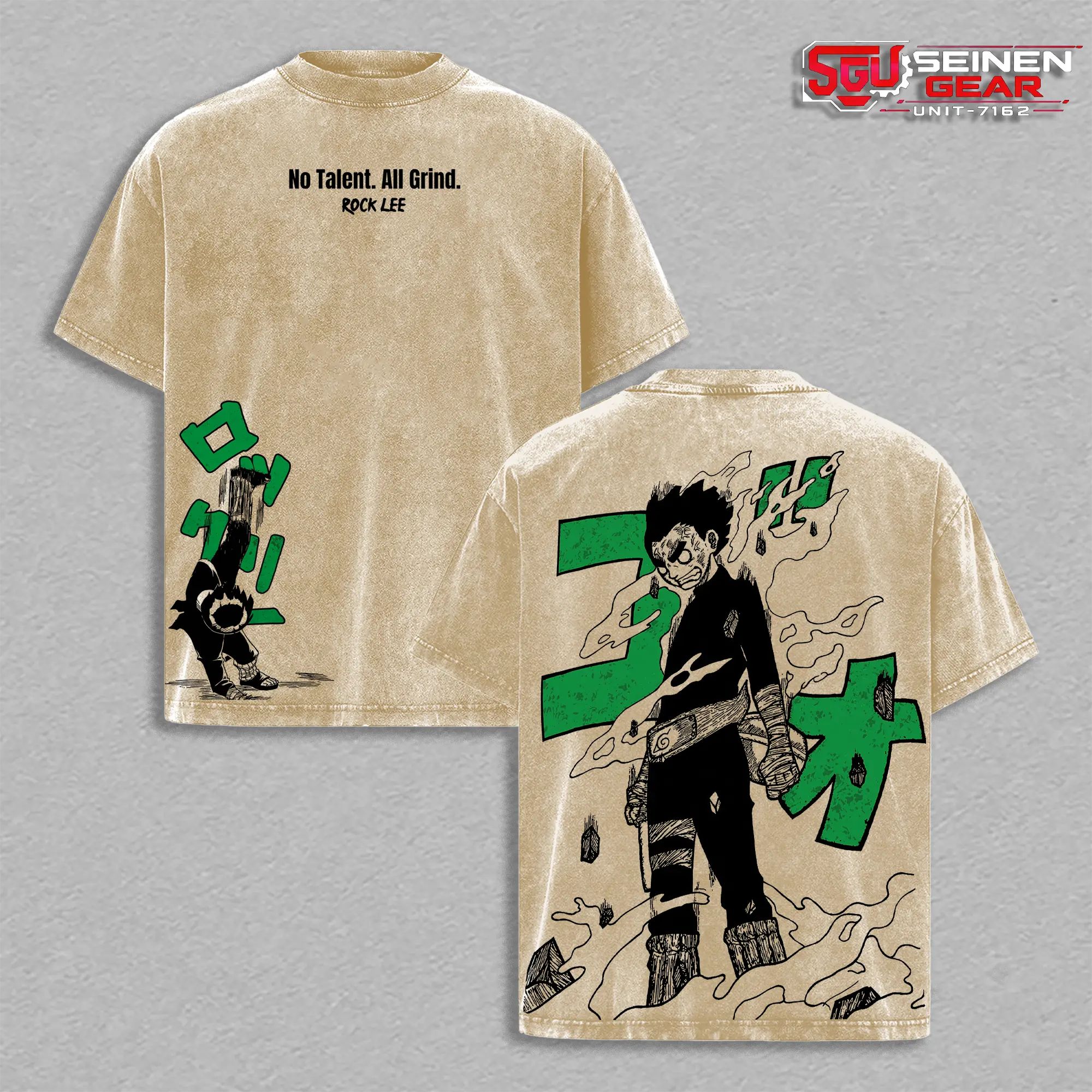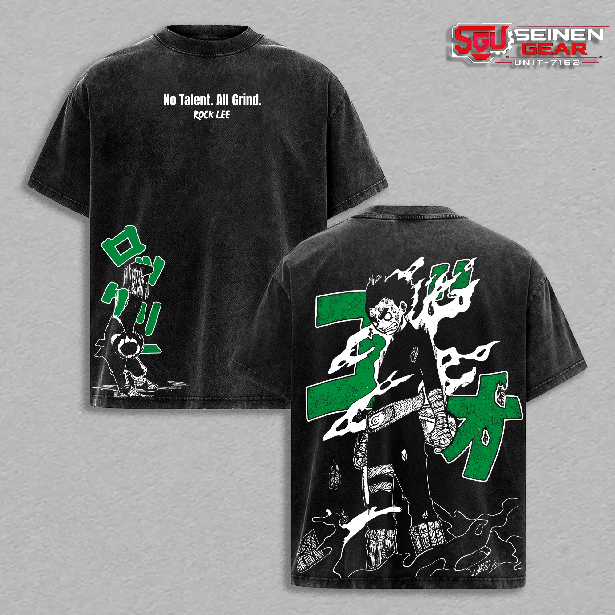 Rock Lee No Talent All Grind Double Printed Vintage Washed Oversized Tee, Naruto Anime Manga Heavyweight Cotton Graphic Tee Streetwear Gift for Him