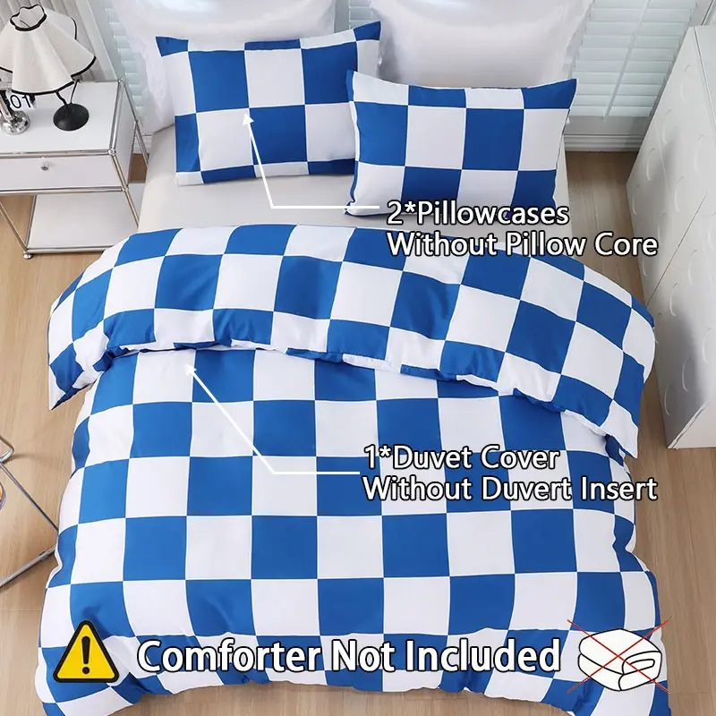 5. Modern minimalist blue & white plaid geometric bedding set, 3-piece set includes 1 duvet cover and 2 pillowcases, without inserts.Easy to remove, durable, perfect for bedroom decoration, soft and comfortable.