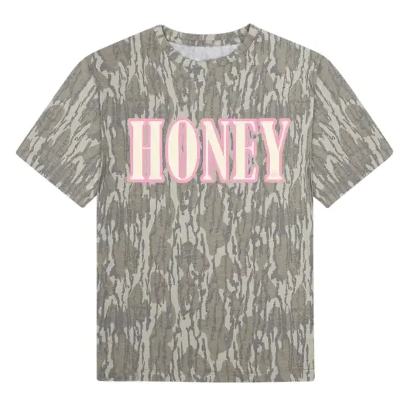 Honey Short Sleeve Pattern Camo Tee 3D, Mossy Oak Washed Out Camo Tee, Pink Honey Hunting 3D Gift for Him, for Her