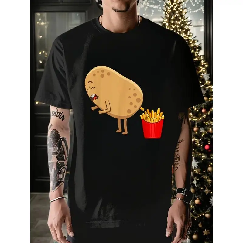 JEHOVAH GLOBAL INC Funny French Fries Designs For Men Women Potato Food Eaters T-Shirt Summer Comfortable Casual Short Sleeve T-Shirt