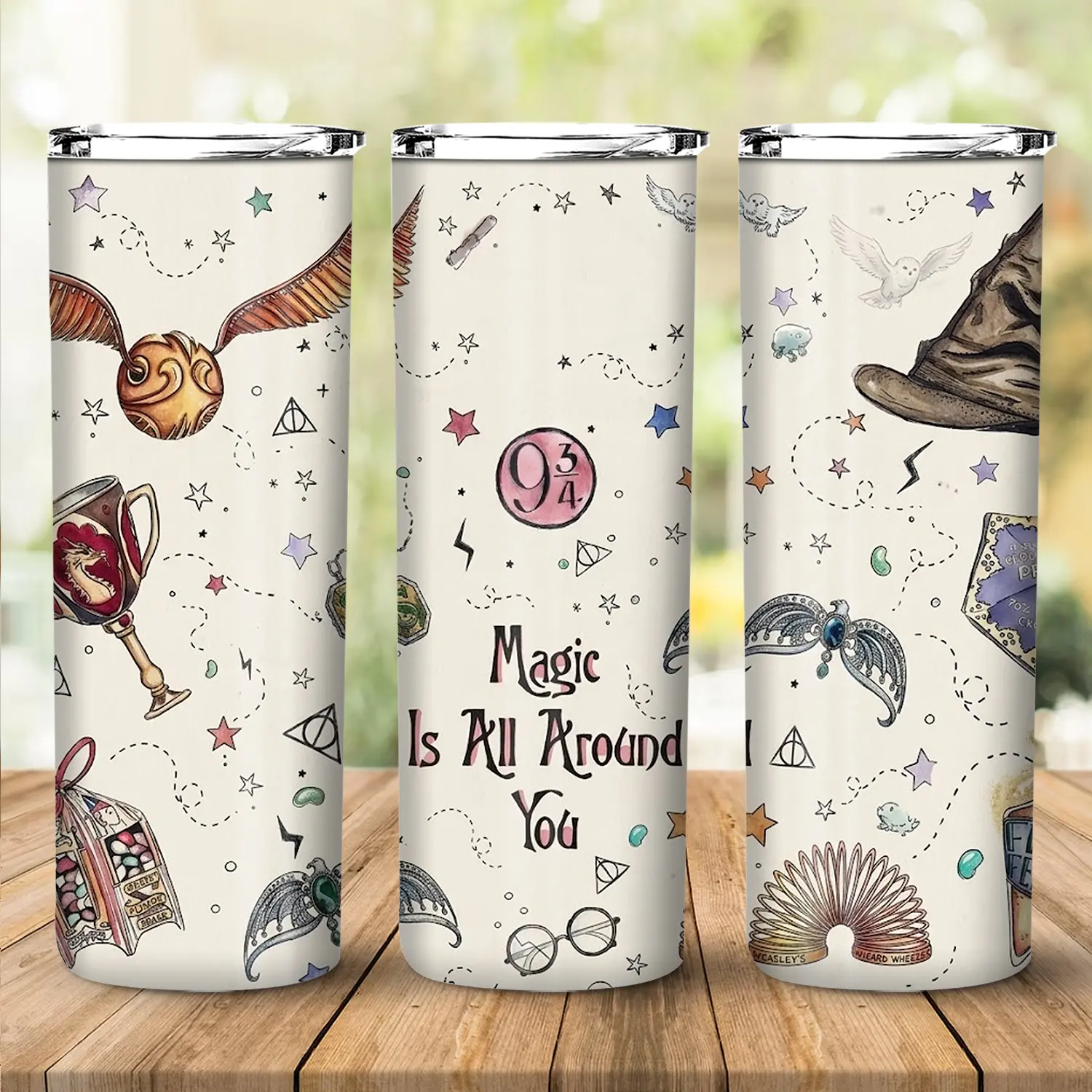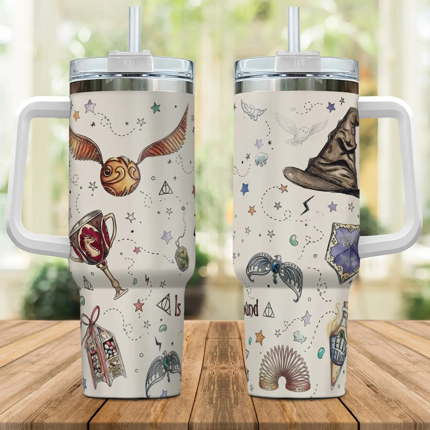Wizard 9 3/4 Tumbler 40oz, Fantasy School Inspired Cup, Insulated Travel Mug with Handle and Straw, Magical Gift Idea