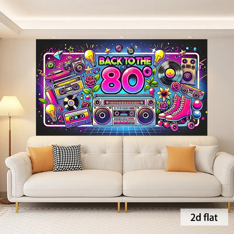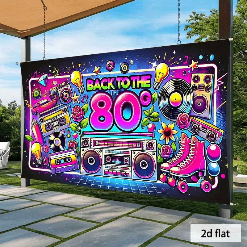 5. 1pc Back to the 80s Retro Collage Party Banner - Vibrant Polyester Background with Boombox, Cassette & Roller Skate Design for Birthdays, Weddings, Photo Studio Props, Home Decor, Event Decoration, Nostalgic Theme, Flat Lay Style, 2D Flat