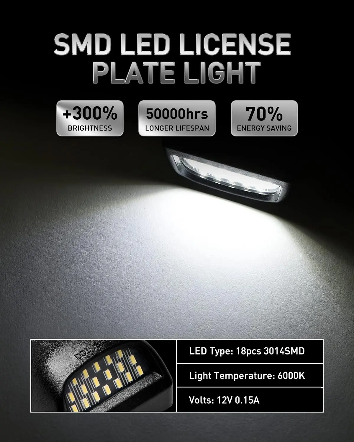 [EXTREMELY BRIGHT]: Each light features 18 SMD 3014 LED chips with 6,000K white brightness, providing 300% more illumination than standard factory lights—enhancing rear-end visibility without obstructing your backup camera.