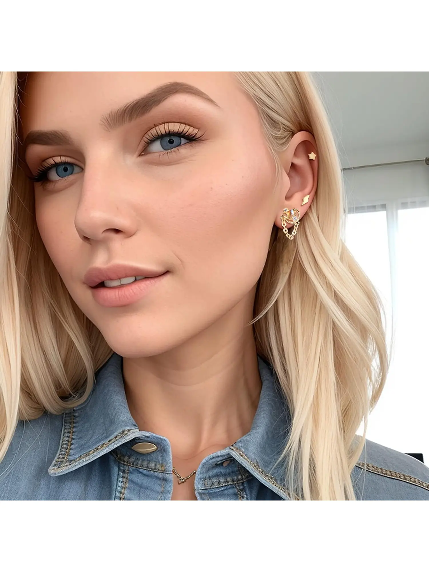 14-Piece Earring Set for Women – Popular Set: Silvery and Golden Studs, Hoops, Dangle Earrings, Small Size, Stainless Steel, Multiple Styles, Zirconia, Hypoallergenic, Cartilage, Women’s Jewellery Hoop Earring Sets