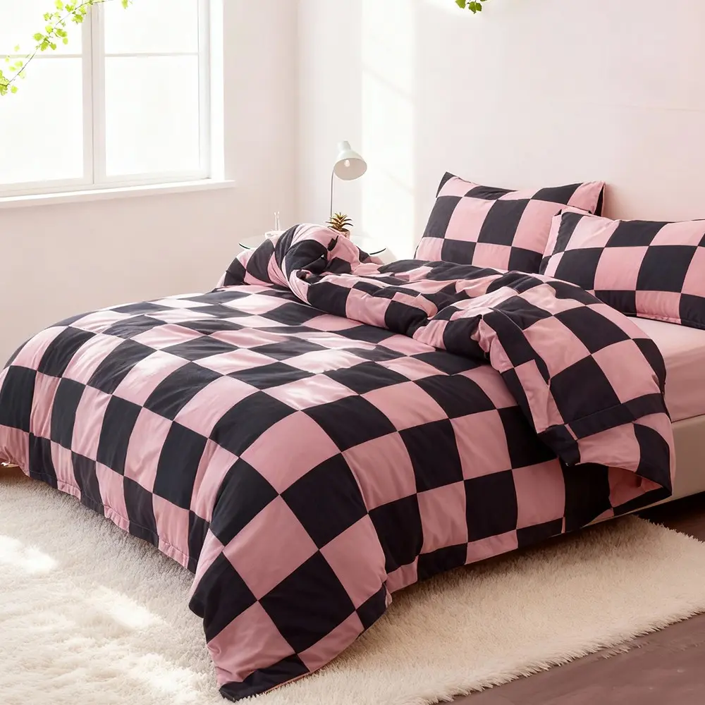 5. 3-Piece Pink & Grey Checkerboard Geometric Digital Print Duvet Cover Set, Includes 1 Duvet Cover and 2 Pillowcases (Without Insert), Soft & Breathable Fabric, Ideal Gift, Ensures Comfortable Sleep.