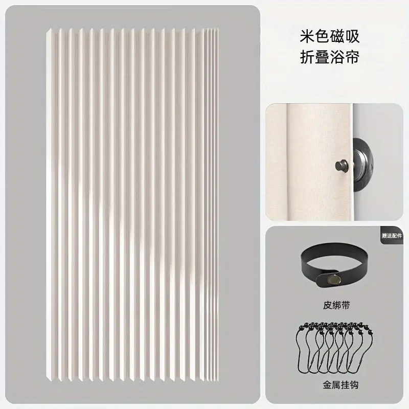Foldable Magnetic Shower Curtain, Waterproof, Mold-Proof, No Drilling Required, Thickened, Light-Blocking, Partitioning Shower Curtain
