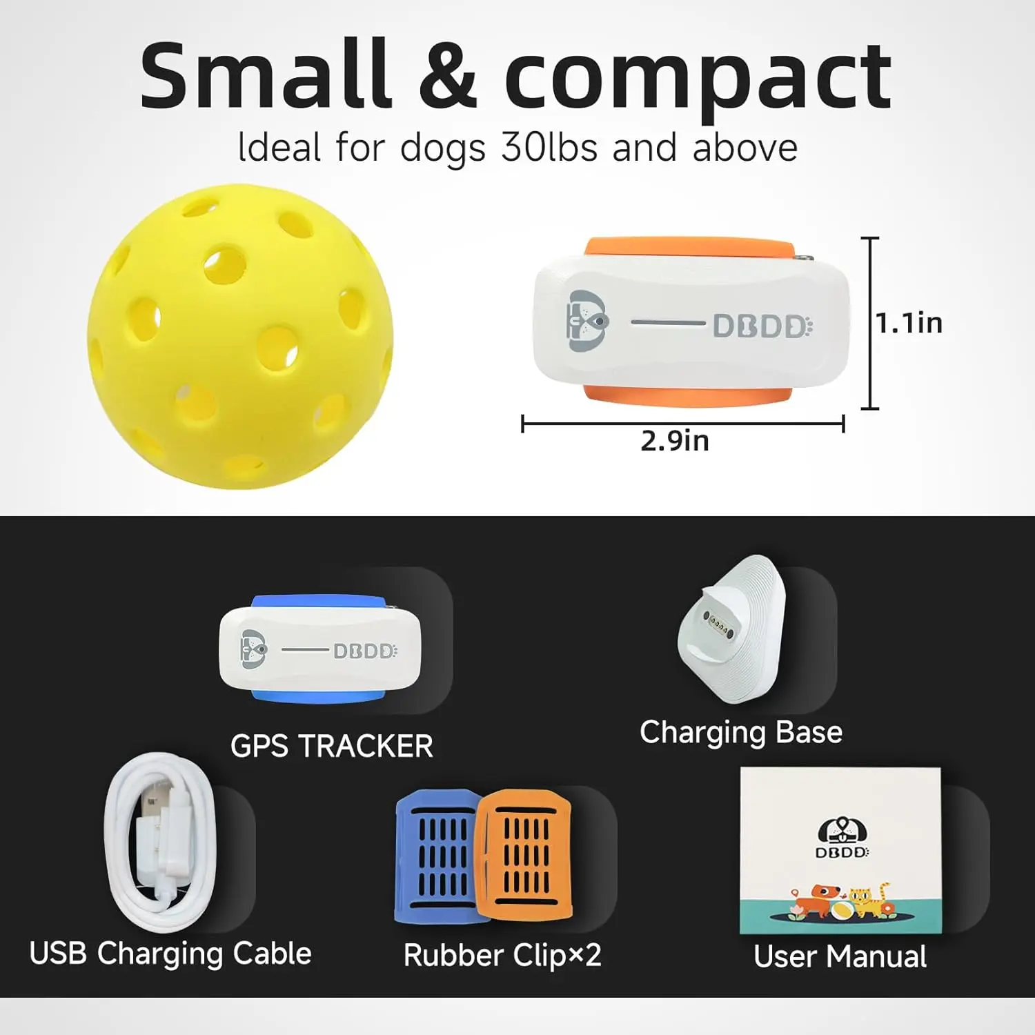 ·Lightweight, Waterproof Tracking Device: The GPS tracking device for pets is tiny, lightweight and stylish, only 0.5 pounds. Besides, the GPS tracker for dog is IP67 waterproof, so you needn’t worry about the rain, mist, snow or water. Fit for 30lb+ dogs
