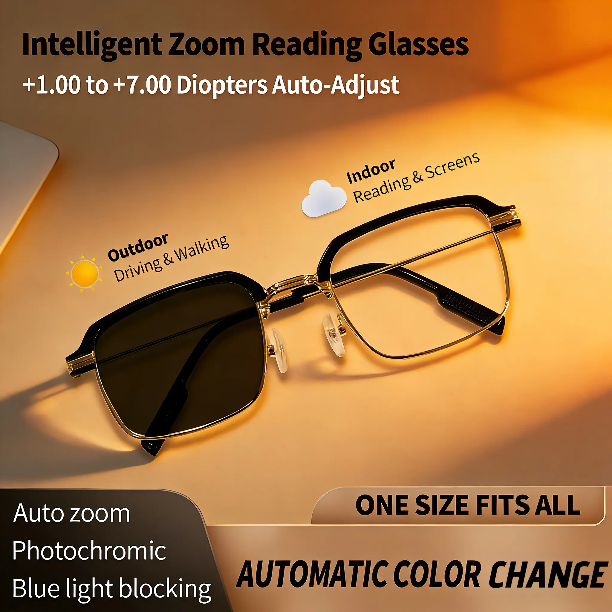 Auto Light Adaptive Smart Glasses 2 in 1 Blue Light Blocking UV Protection Color Changing Lenses Metal Frame Lightweight for Men Women