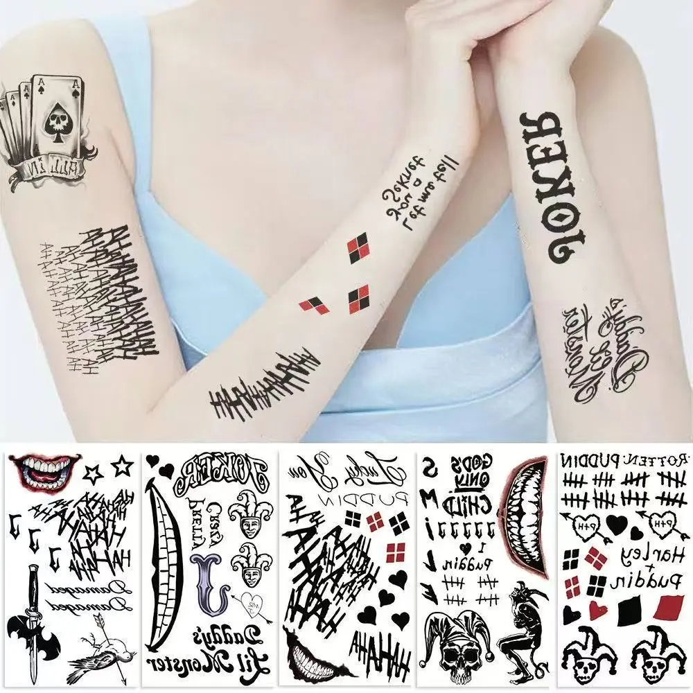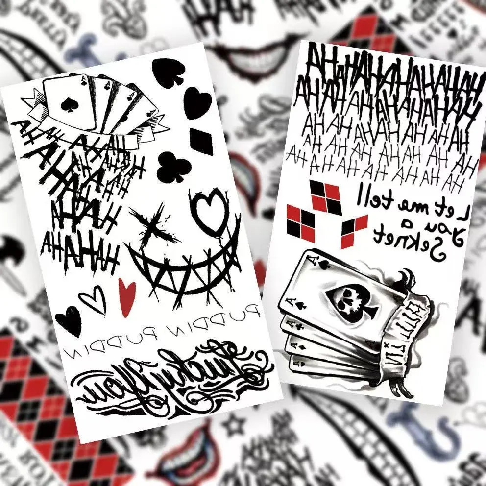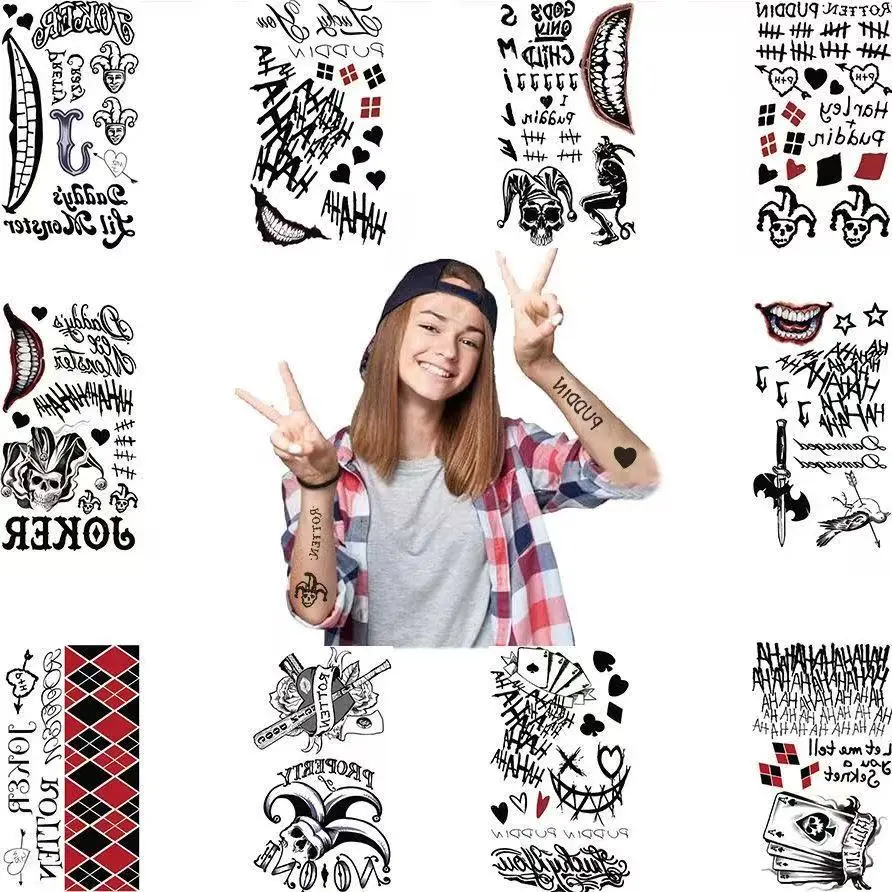 10 Halloween Playing Card Clown Makeup Temporary Tattoos: Cartoon Faces, Cute Pumpkins, Ghosts, and Skulls