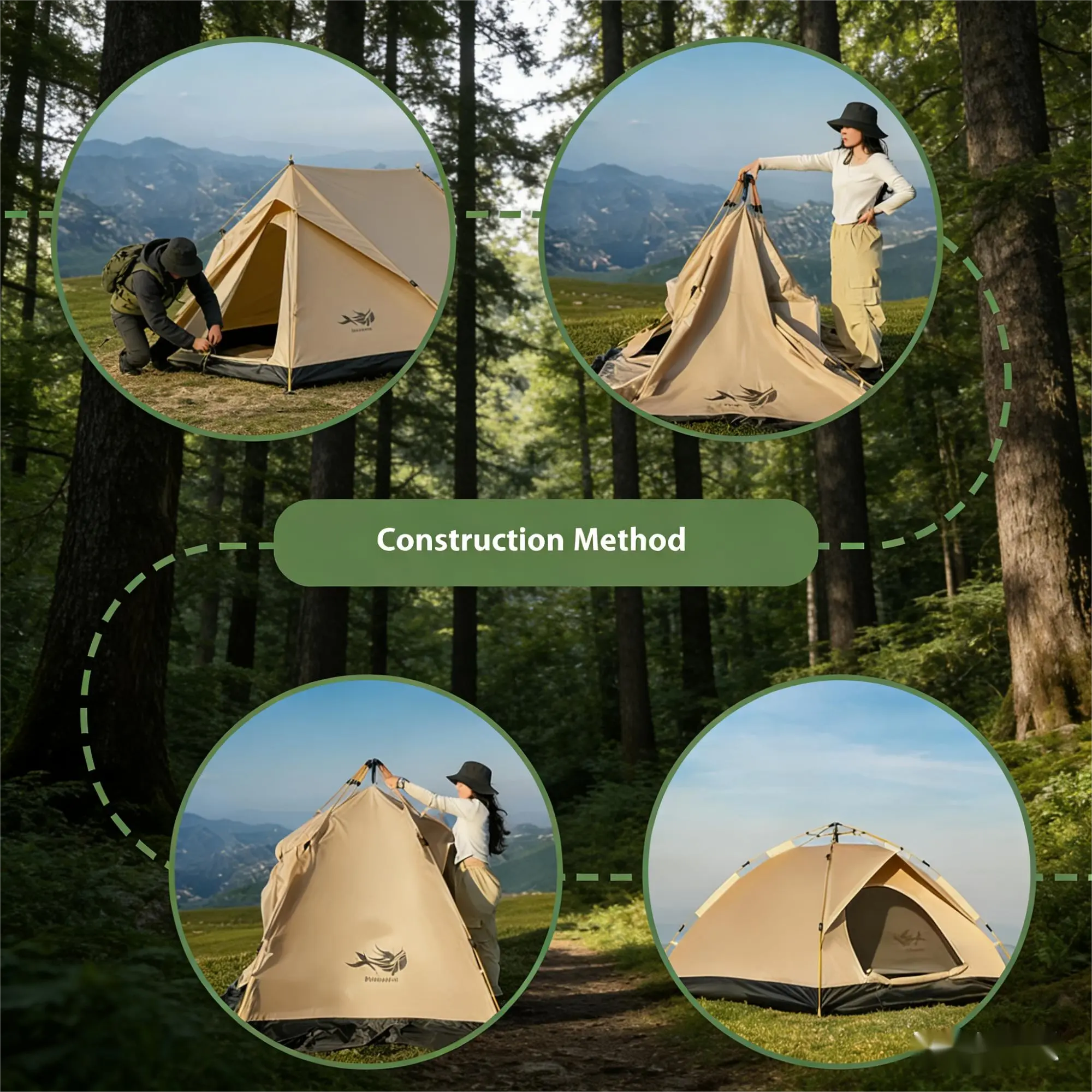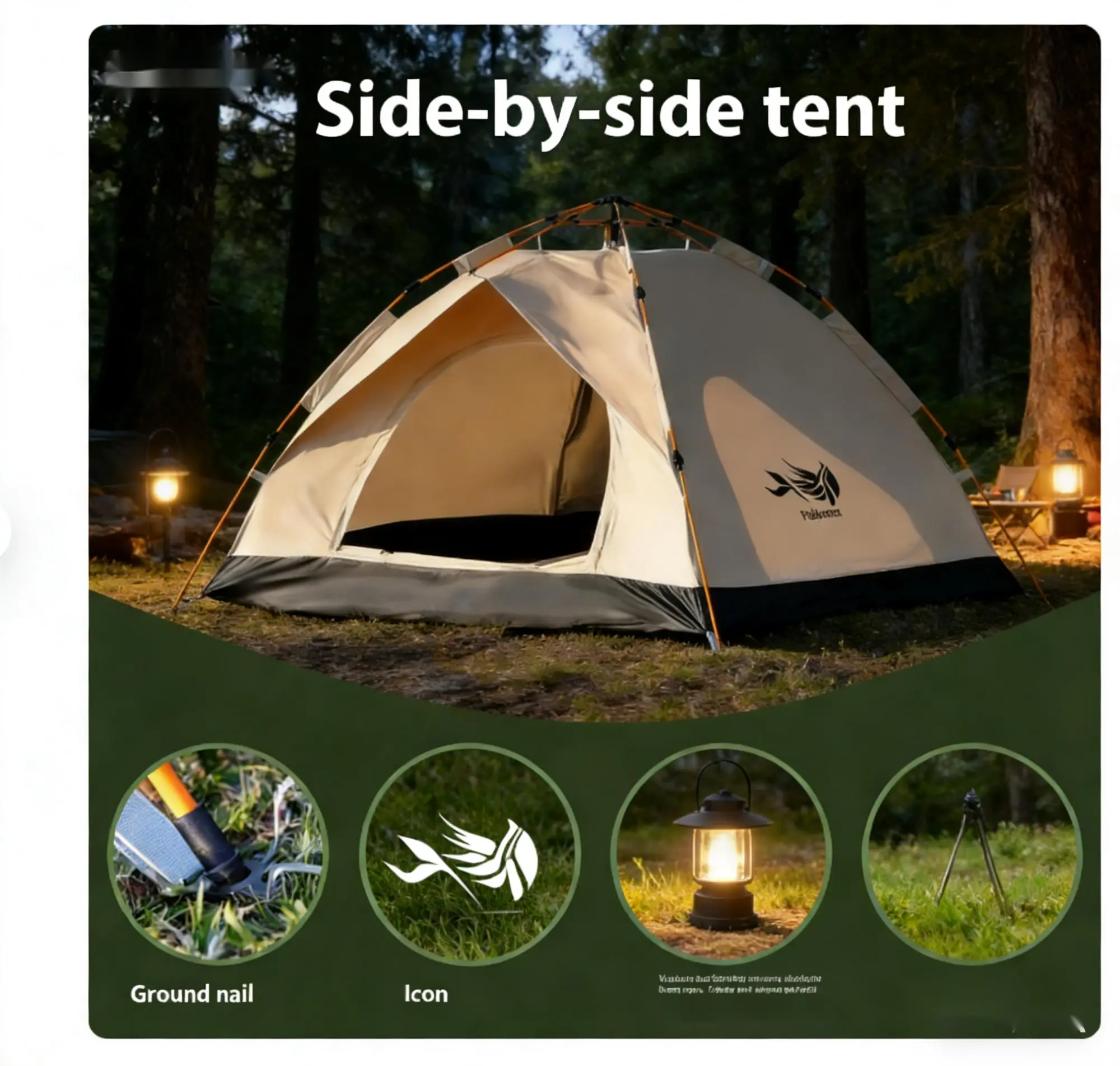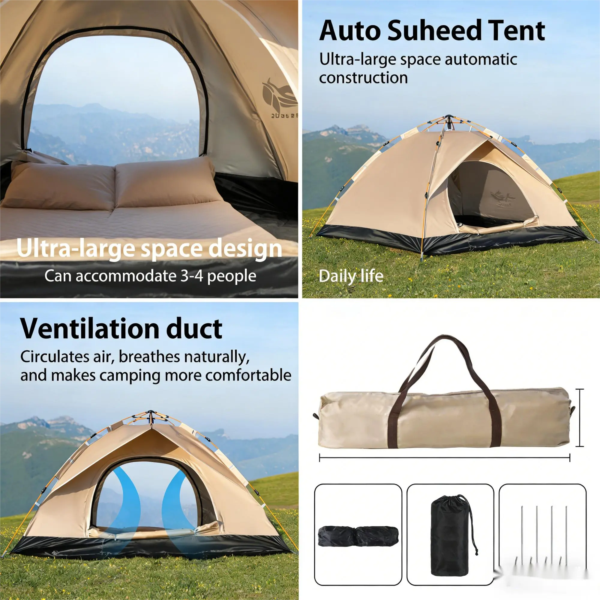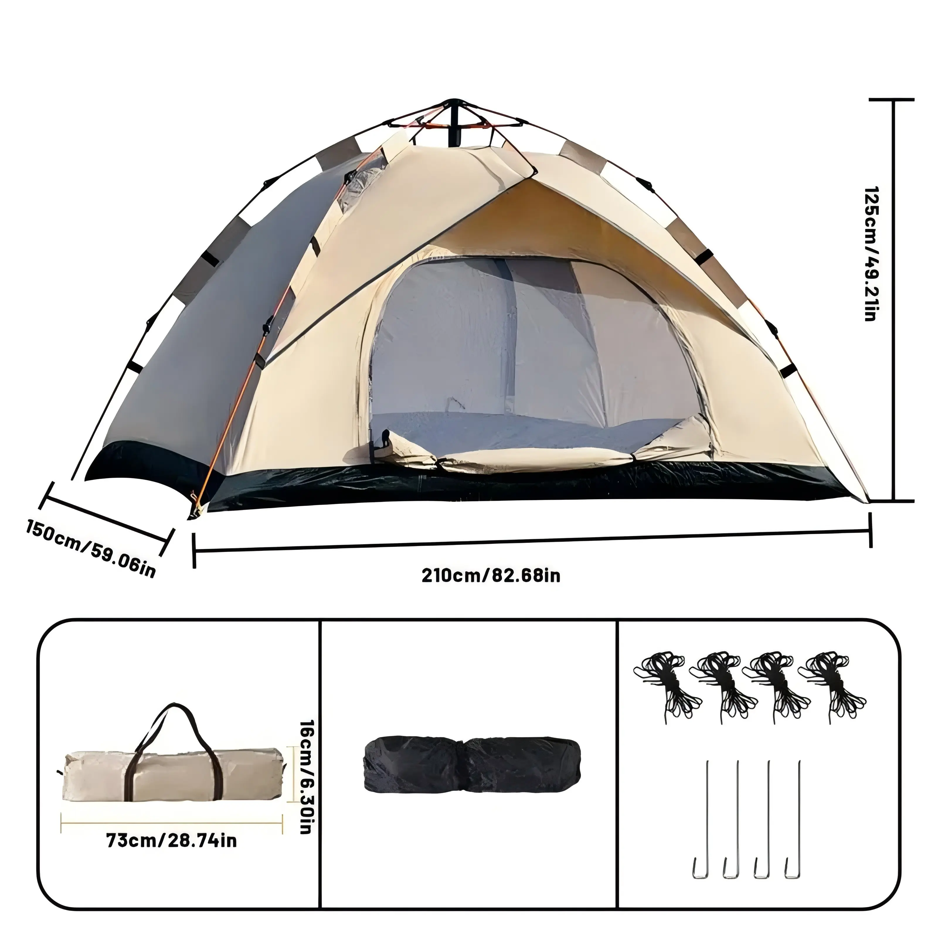 This 3-4 person automatic pop-up tent is your perfect outdoor companion for camping, hiking, and family trips. Designed with ultra-large space, it comfortably accommodates 3-4 people, making it ideal for weekend getaways or outdoor adventures. The fully automatic structure enables one-person quick setup in seconds, saving you time and effort.