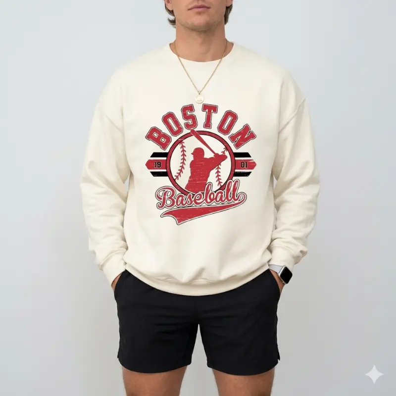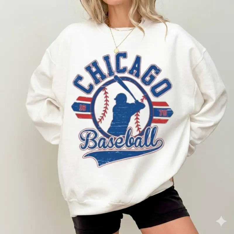 5. Vintage Baseball Tees White Color Retro Established City Baseball Sweatshirt Sports Unisex Crewneck Sweatshirt Sublimation Print Casual Graphic Top - BM