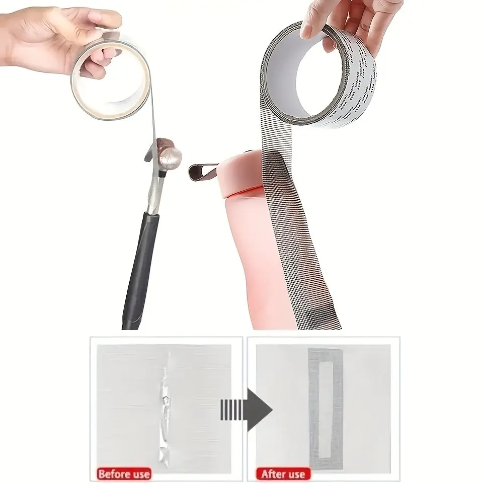 【Strong Adhesion】: This self-adhesive tape ensures a secure bond, effectively repairing damaged holes in window mesh.