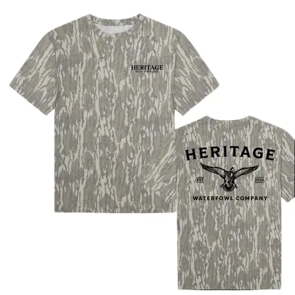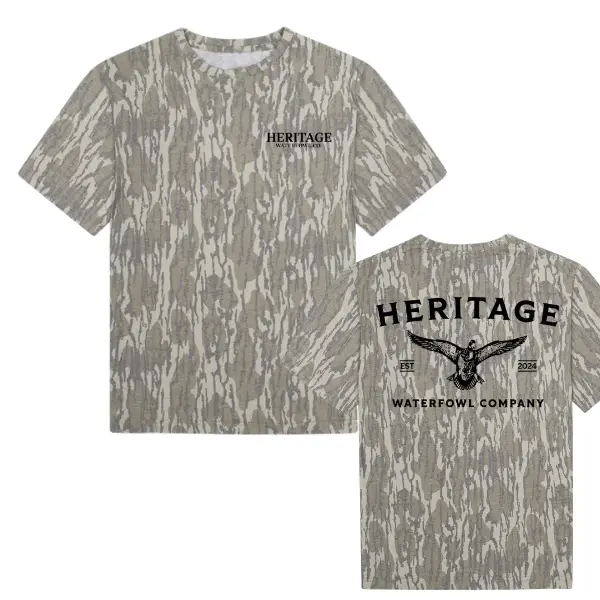 Heritage Waterfowl Company Short Sleeve Pattern Camo 3D For Men, Mossy Oak Stylish Design for Streetwear, Camo Shirt, 3D Mossy Oak, Gift for Him