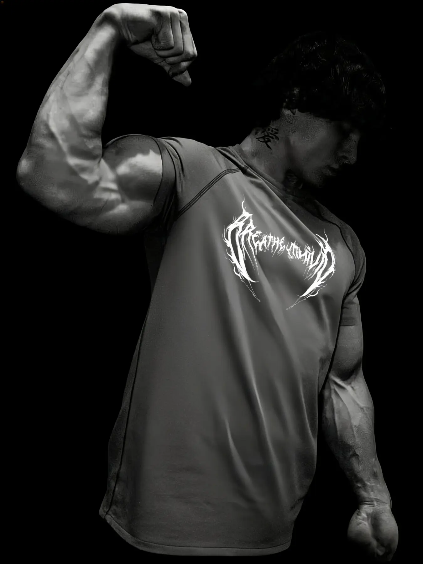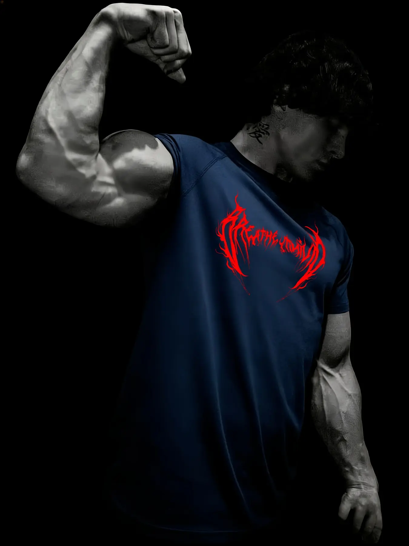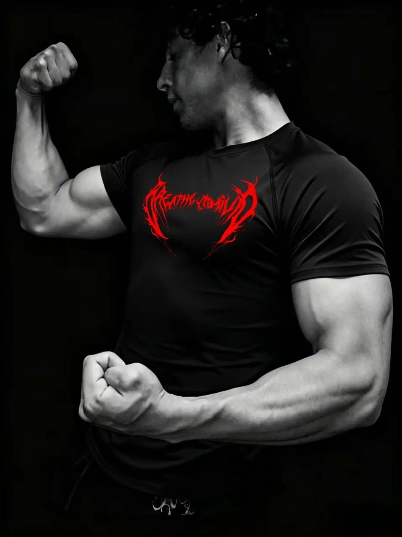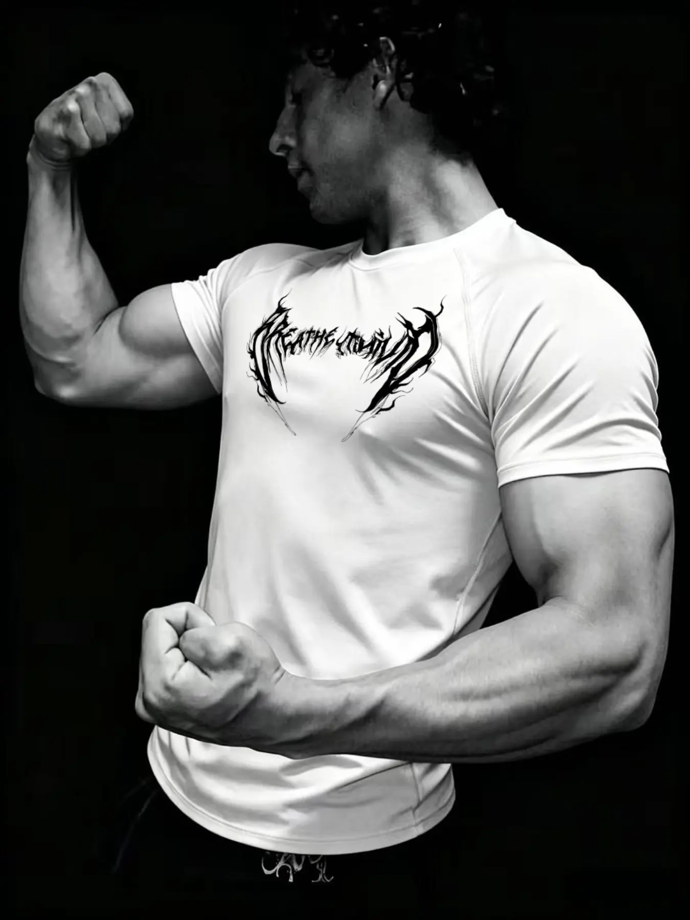 New Men's Fitness Short Sleeve Muscle Sports Tight Fit T-Shirt, Printed Elastic Quick Dry T-Shirt, Outdoor Gym Wear