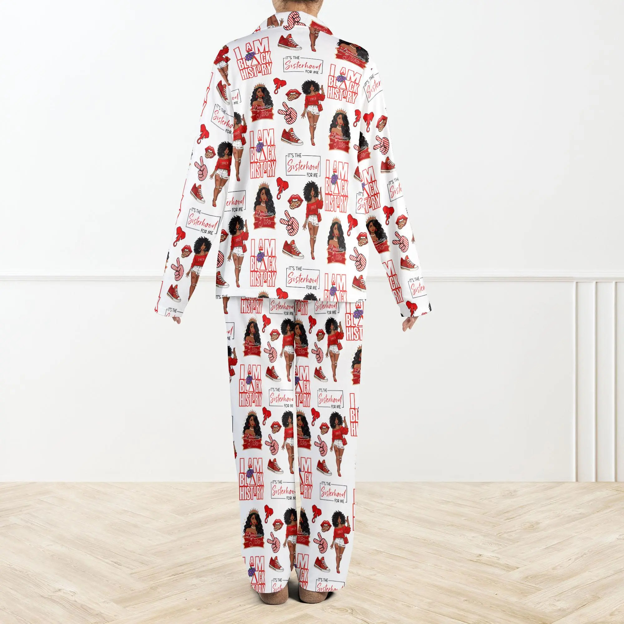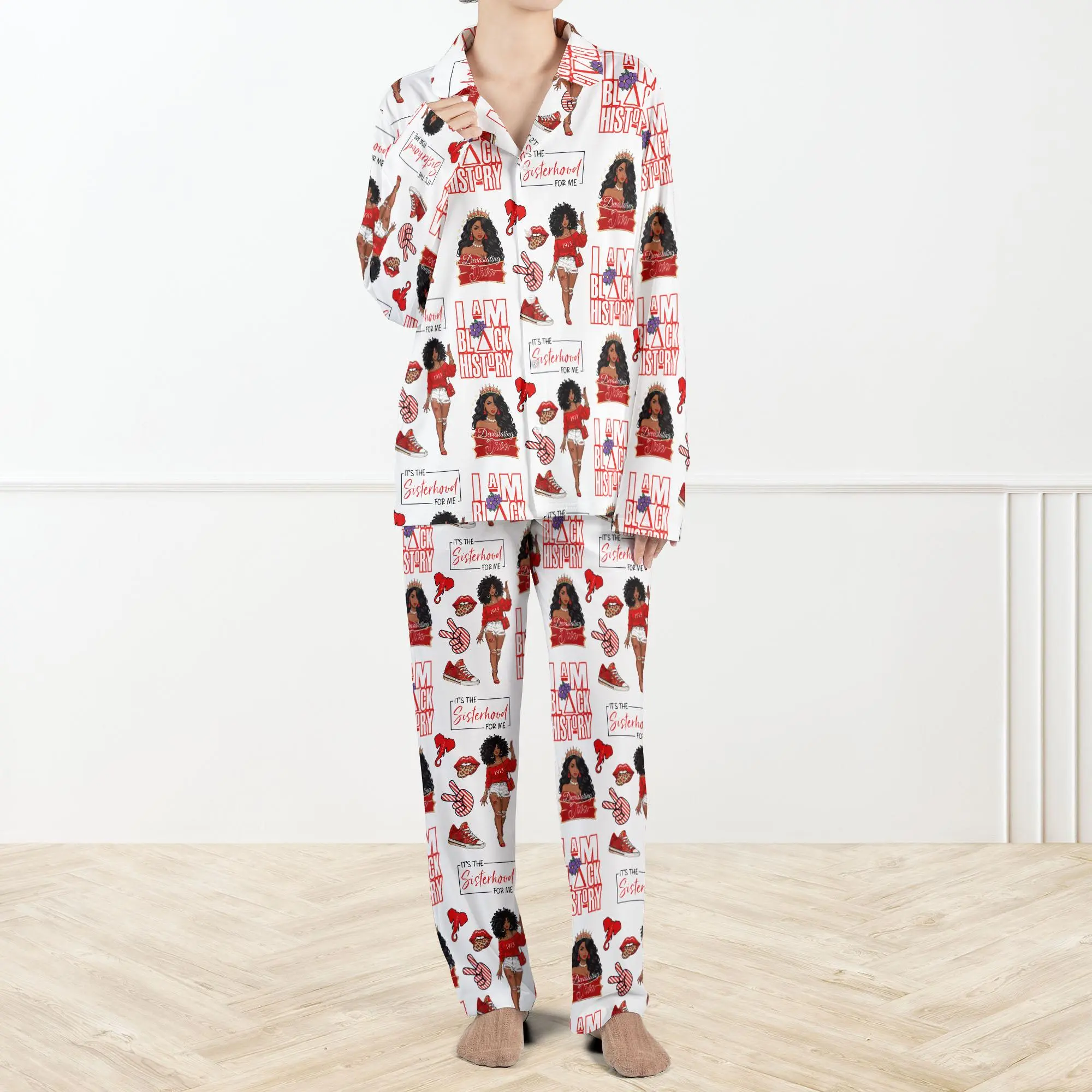 All-Over Print Satin Short-Sleeve Pajama Set with Long Pants (Seller Ship US)