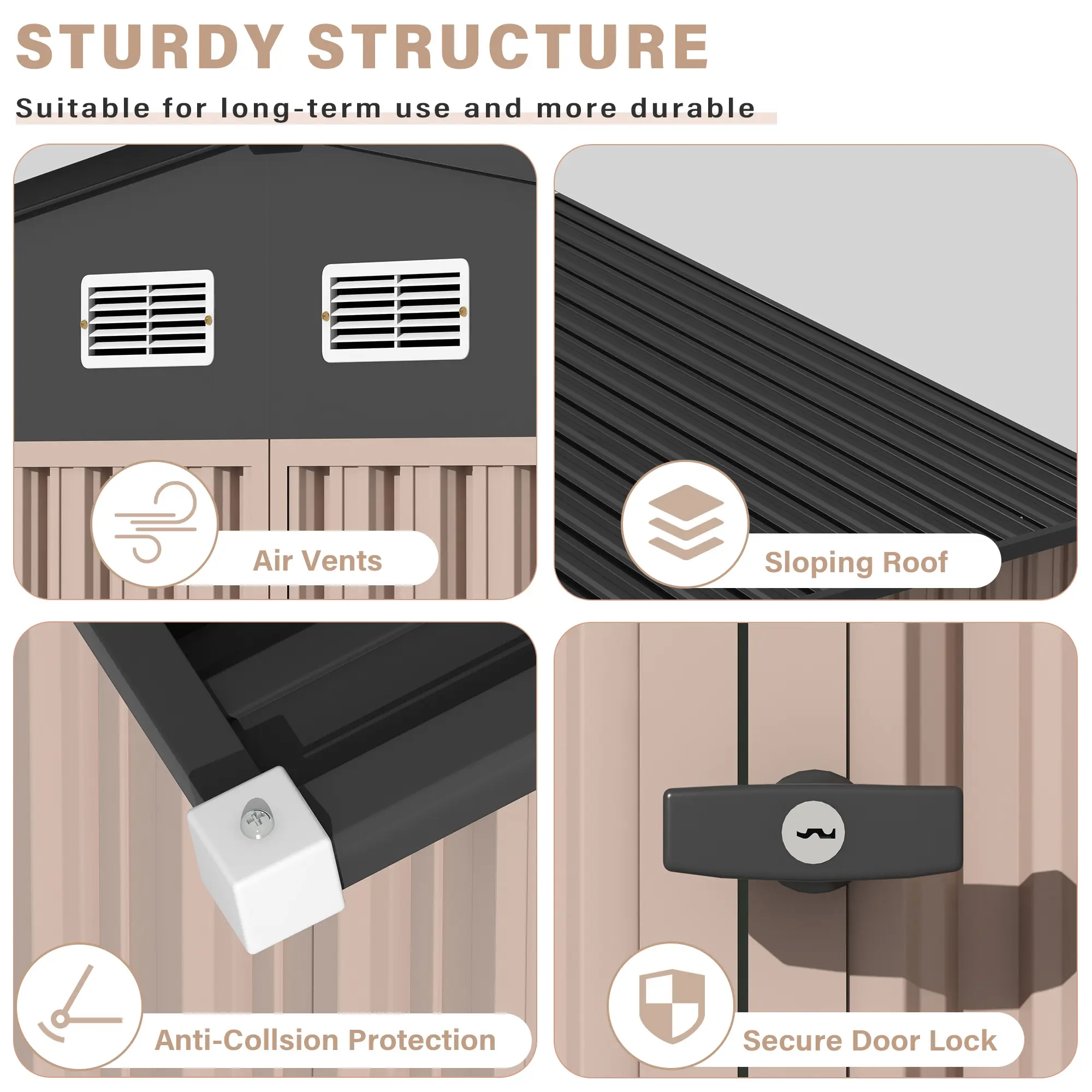 ·Anti-Moisture & Protective Design: The solid steel floor effectively blocks ground moisture, extending the lifespan of your shed and the items inside