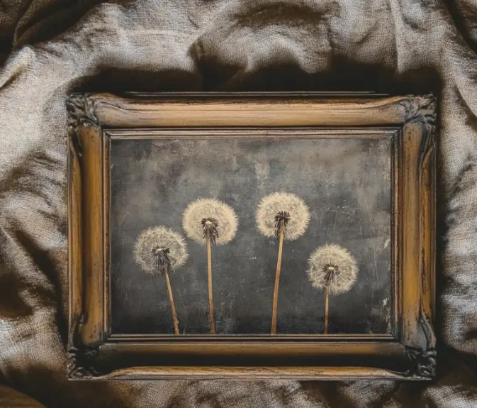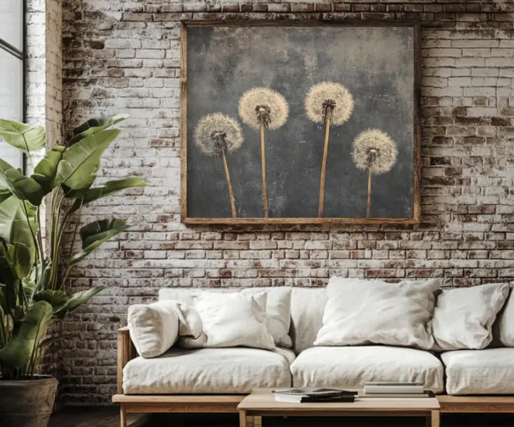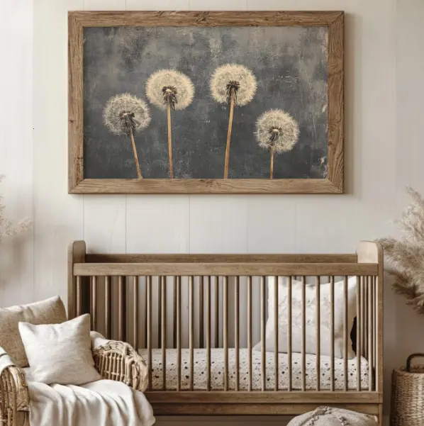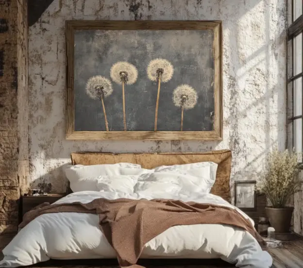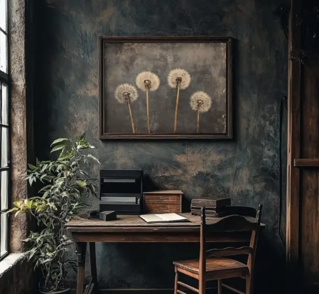 Vintage Dandelion Poster, Rustic Wildflower Art Canvas, Dark Academia Painting, Antique Landscape Decor, Moody Wall Print, Printed and Shippe