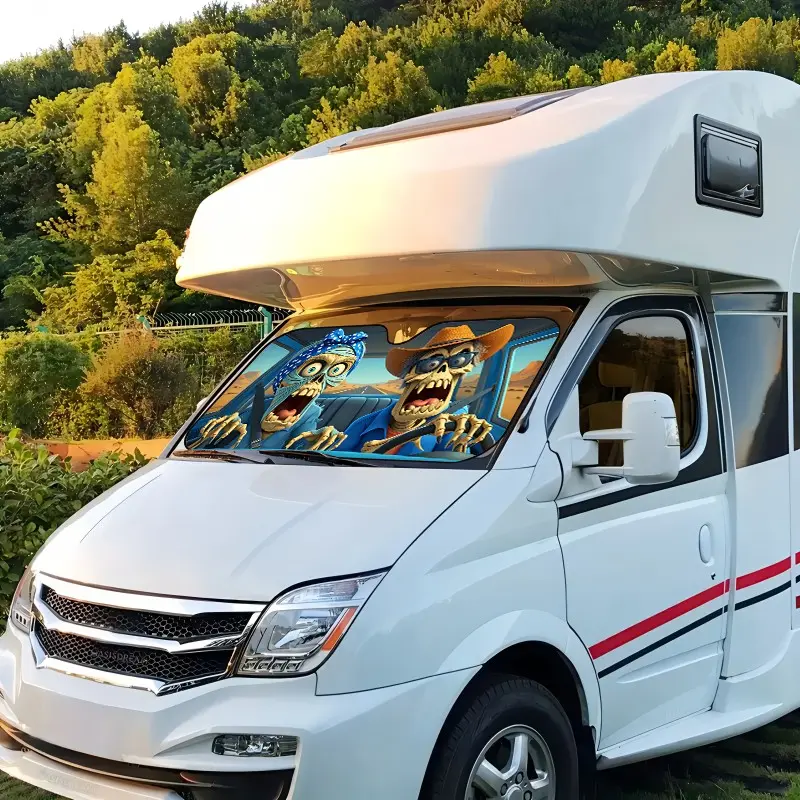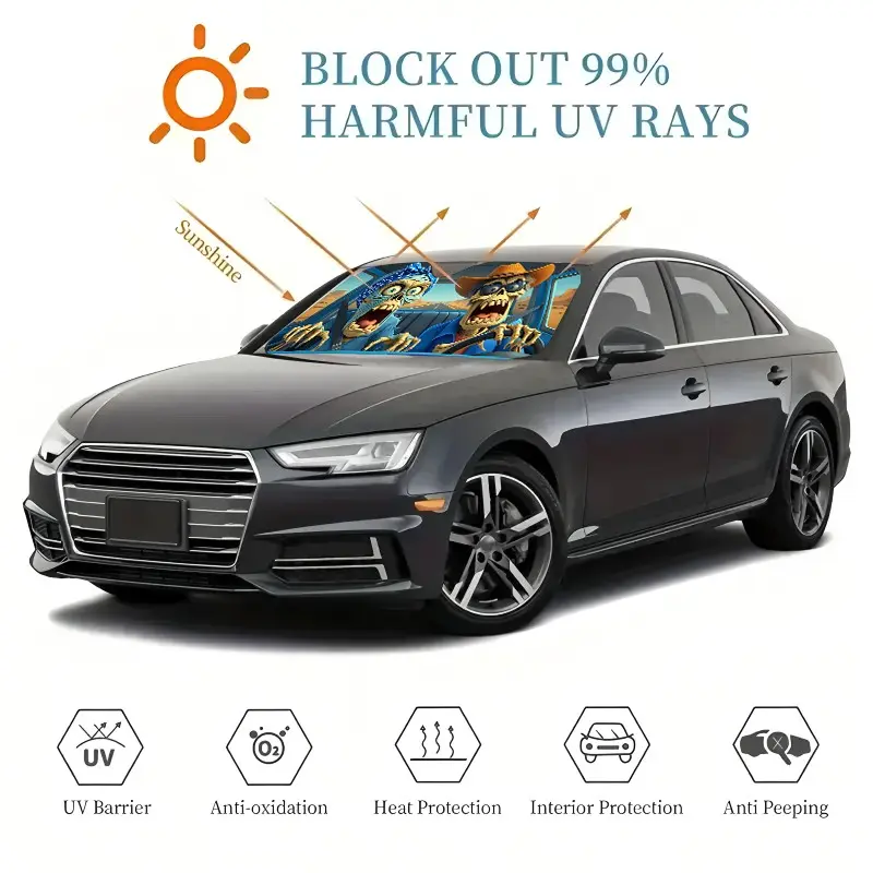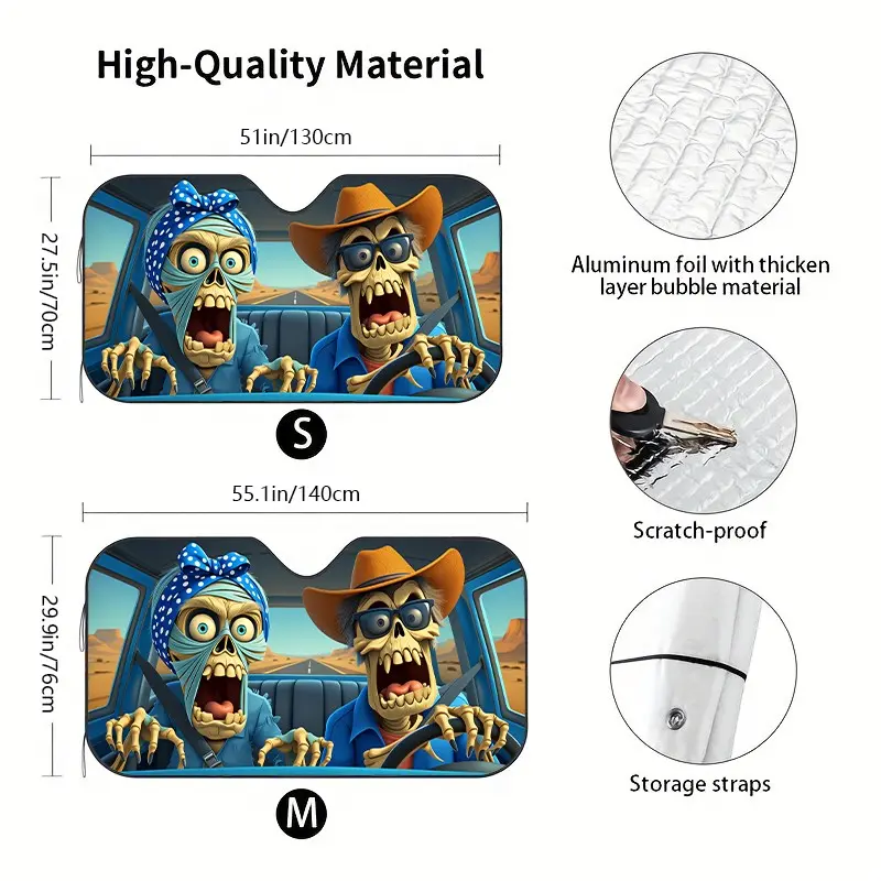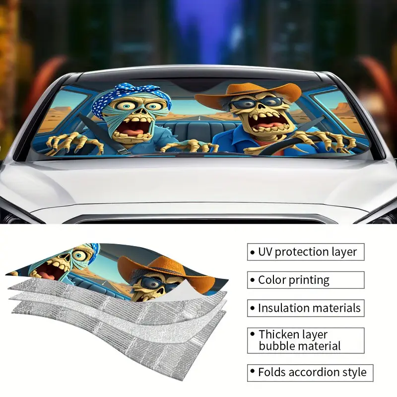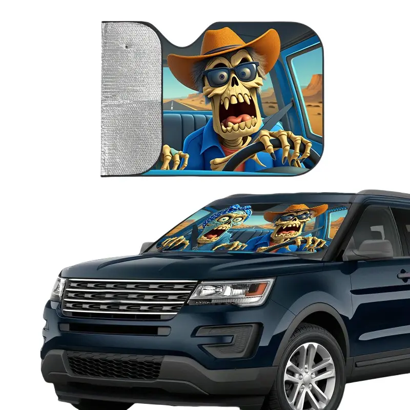 Skull Death Car Sunshade, UV Protection, Foldable Polyester, Fits Rvs and Suvs, Front Windshield Cover, Universal Fit for Cars