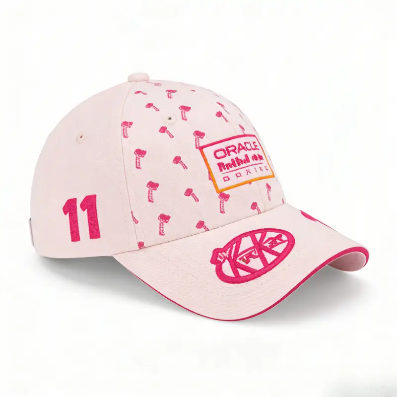 Floral pink letter baseball cap for women with large head circumference, soft top, wide brim, makes the face look smaller