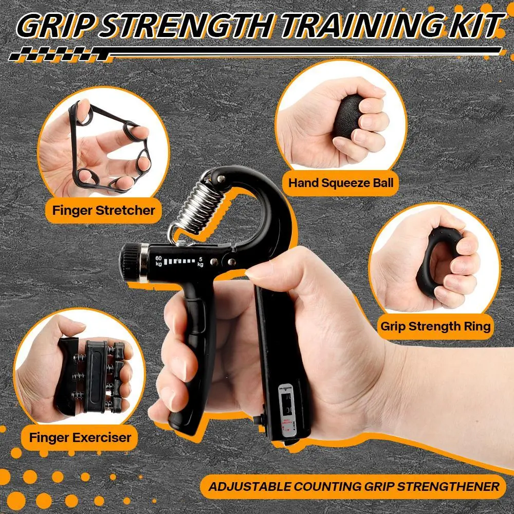 Forearm Strengthener Kit - 5 Pack:The kits includes an adjustable smart counting grip strengthener, Finger Stretcher with 3 Level, Finger Exerciserl, Grip Ring and Stress Ball.Perfectly meet the requirements of different people on muscle training.