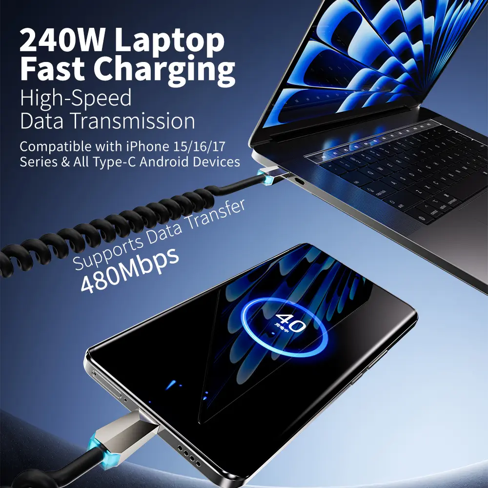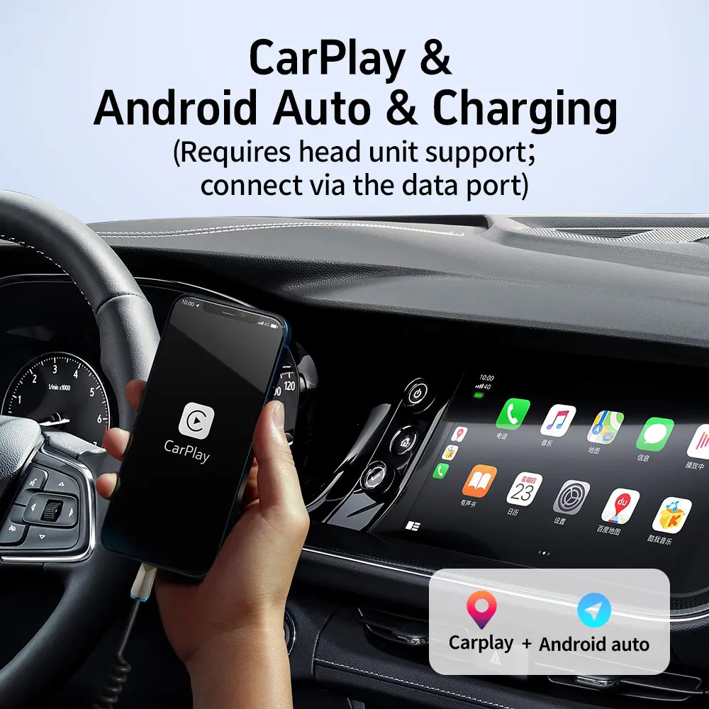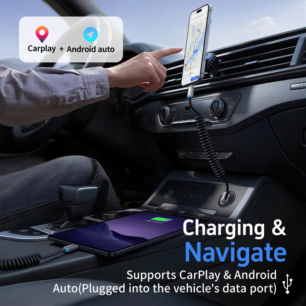 480Mbps high-speed data transmission: The cable enables rapid file transfers between smartphones, tablets, and computers. It also supports vehicle connectivity—such as CarPlay and Android Auto—when connected to a car's data port (provided the vehicle's infotainment system supports these features).