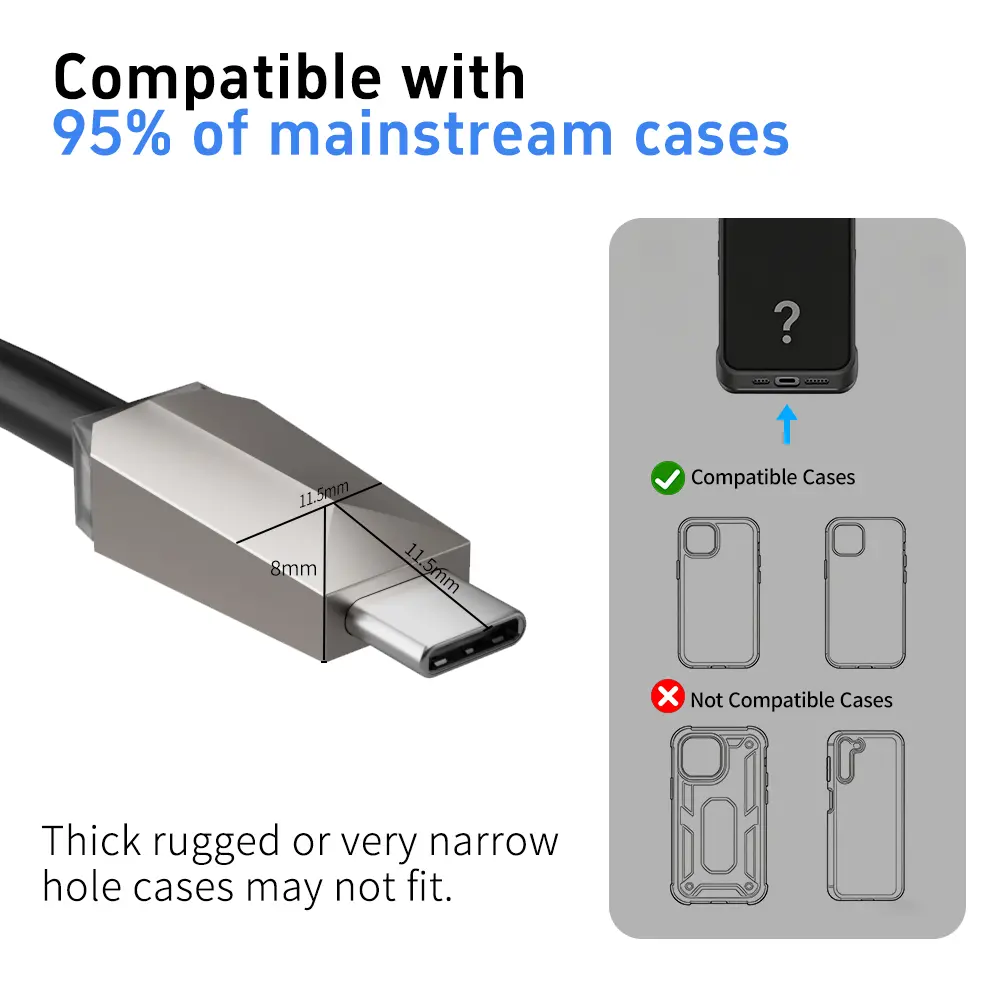 Compatible with Apple iPhone 17, 16, and 15 series phones, Samsung Galaxy S series, Android Pixel series, tablets, laptops, and other USB-C devices.