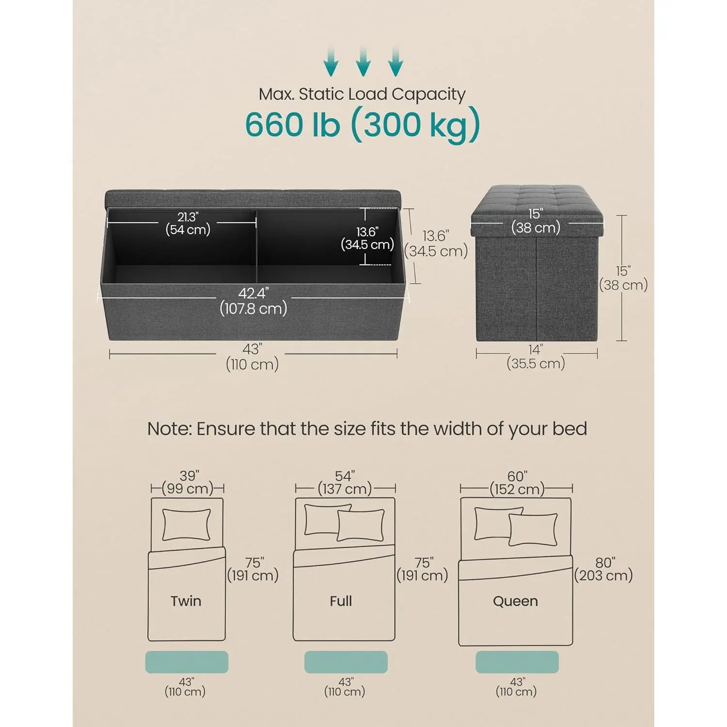 Collection - 43 Inches Folding Storage Ottoman Bench, Ottoman Foot Rest, End of Bed Bench, Storage Chest, Load 660 lb, for Living Room, Bedroom, Entryway, Dark Gray