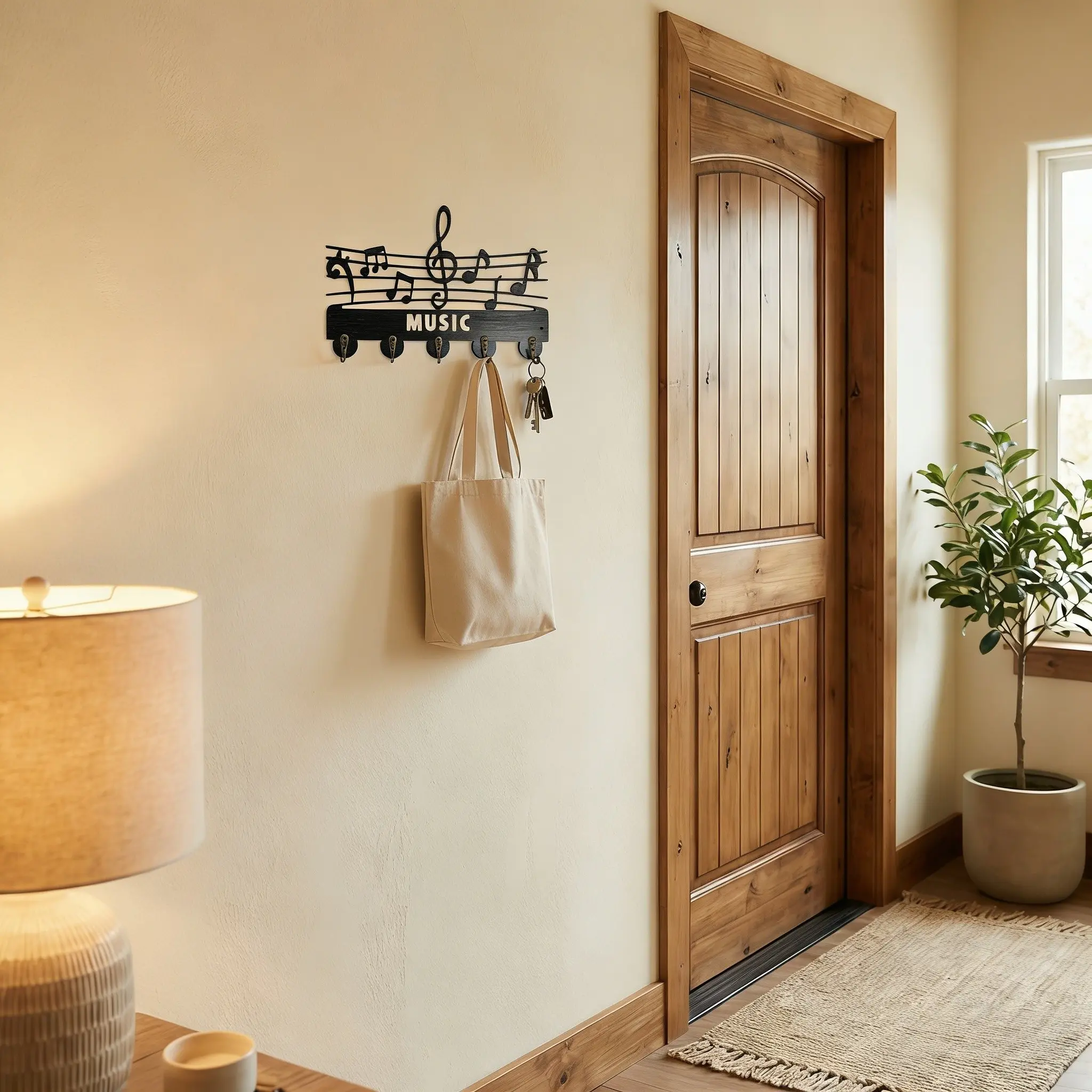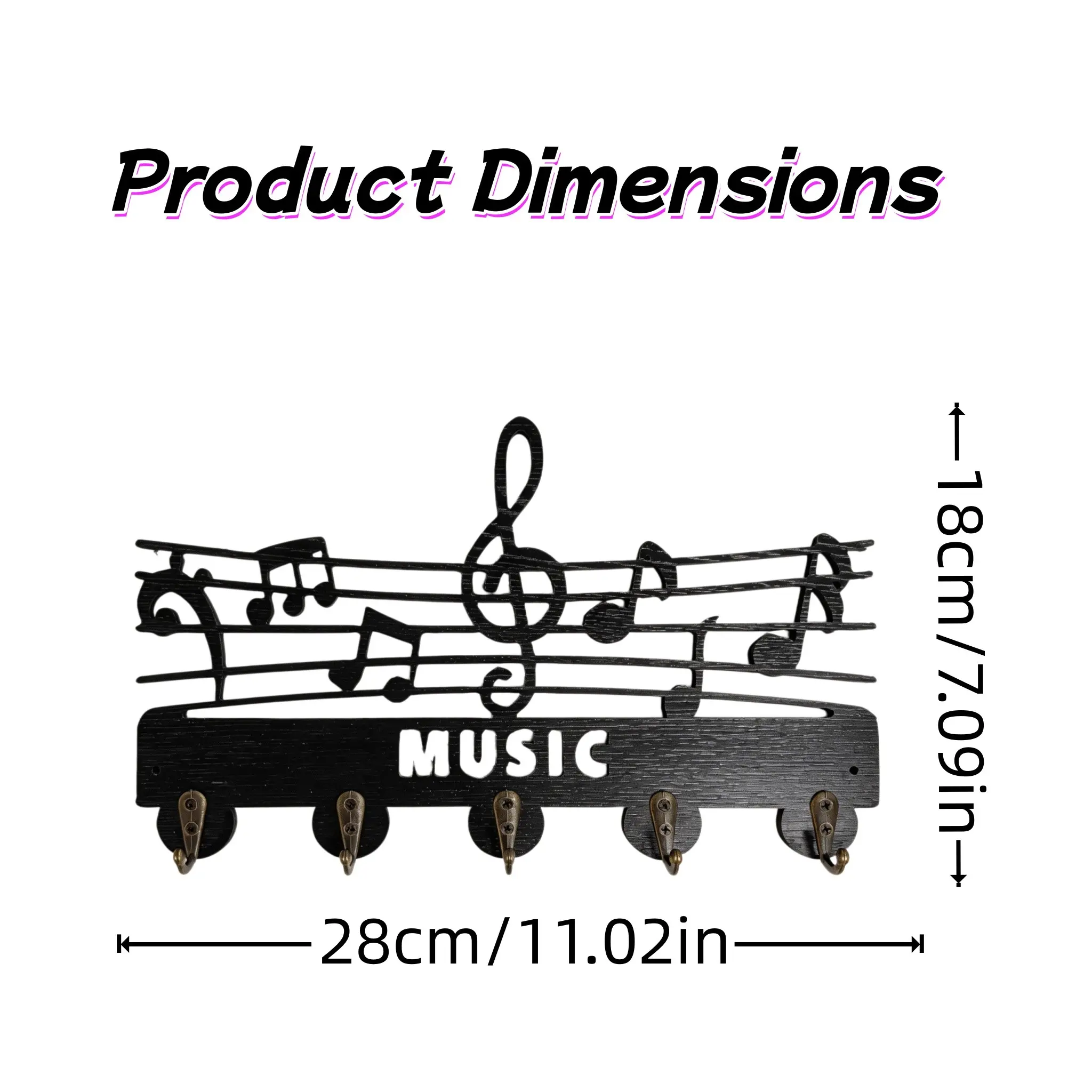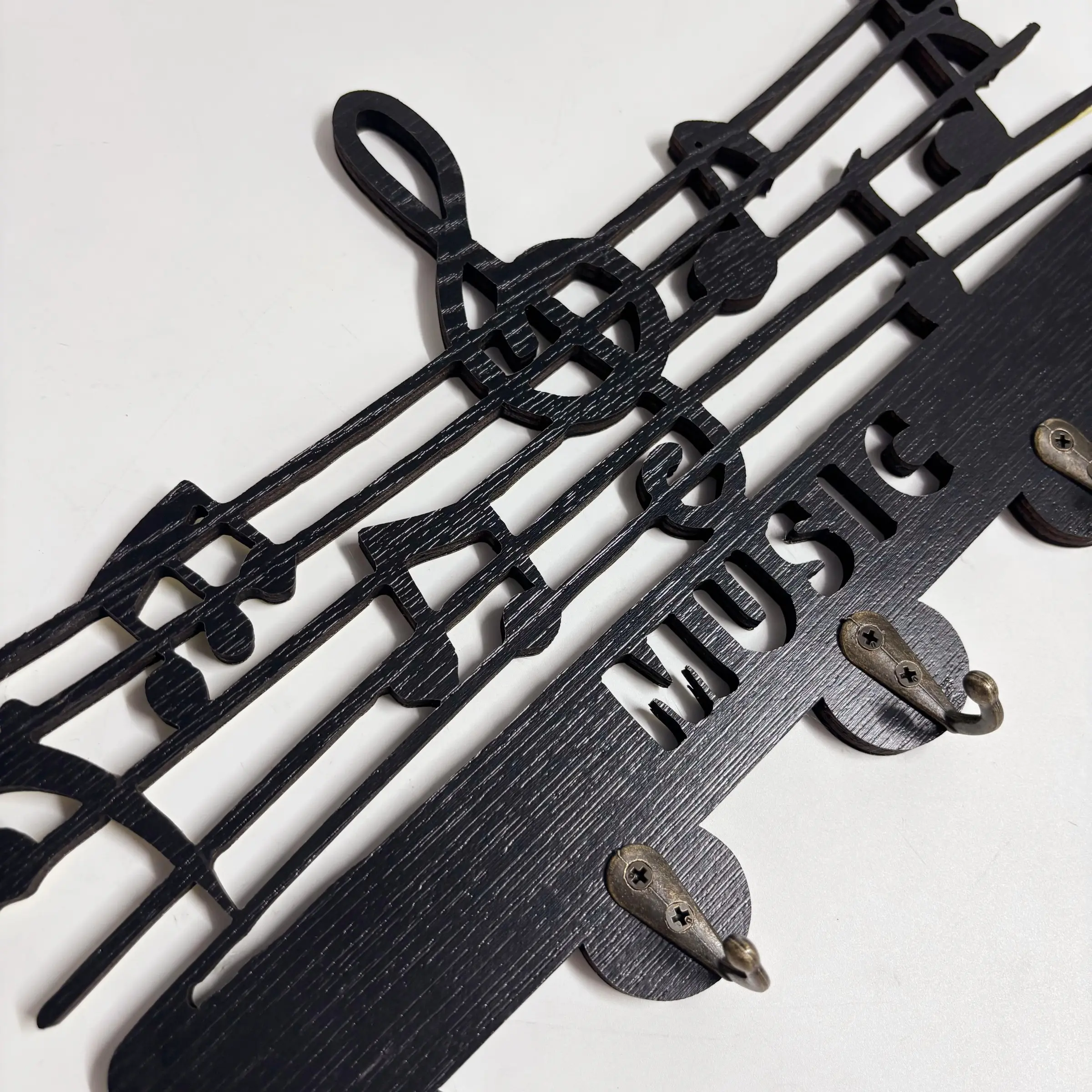 Multi-Functional Wooden Musical Note-Shaped Storage Hook, Wall-Mounted Coat Hook, Key Holder, Mail Rack, Interior Decoration