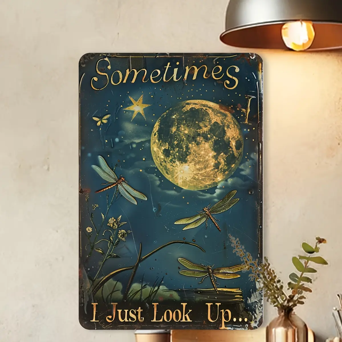 Vintage Dragonfly Moonlight Metal Sign Wall Art Decor with Dandelion and Starry Sky Retro Rustic Hanging Sculpture for Home Office Bar Cafe Library Garage Garden Patio Man Cave Indoor Outdoor Gift Idea 8x12 Inches