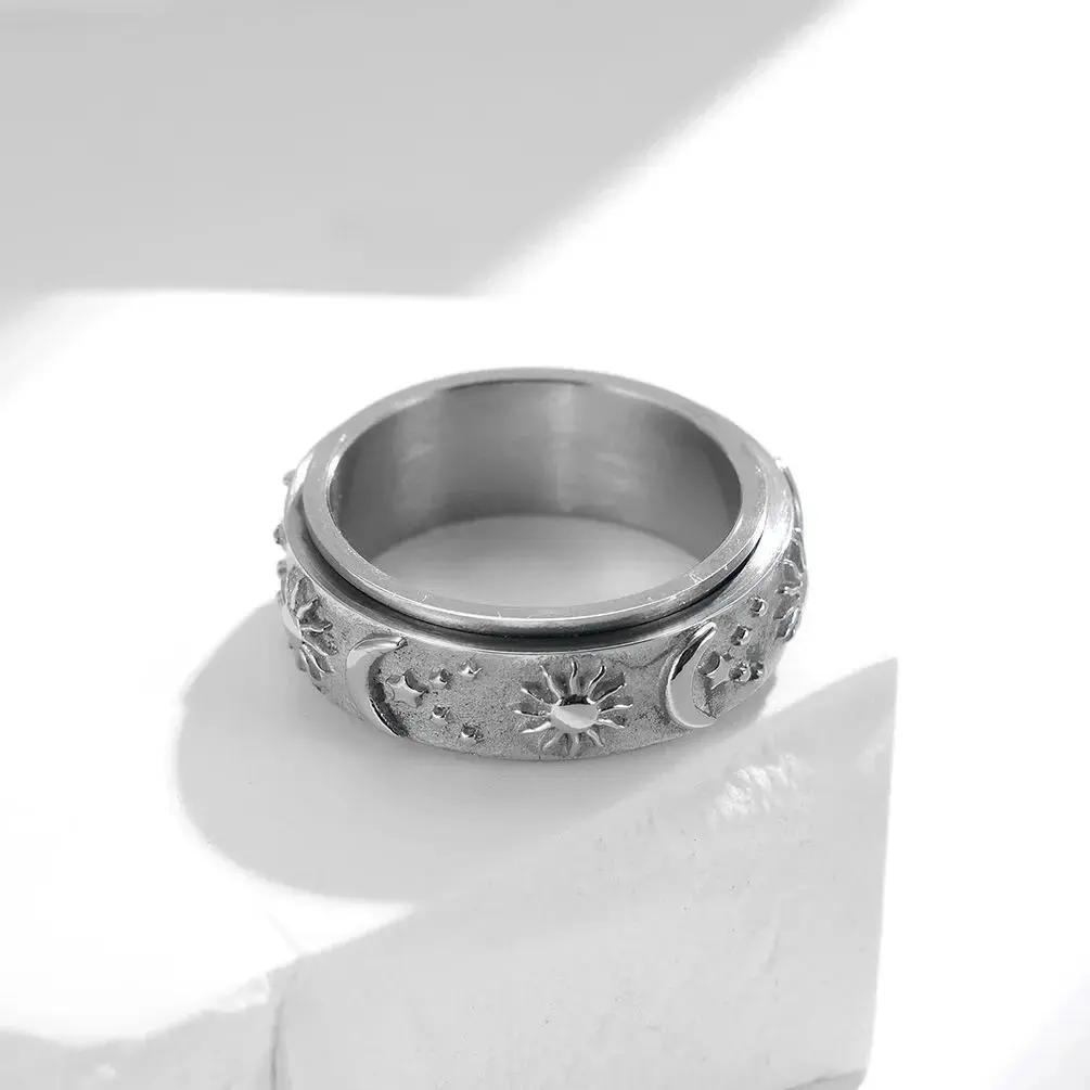 Stainless Steel Spinner Ring Anxiety Fidget Rings for Relieving Stress Ring Eye of Horus Sun Moon Stars Promise Engagement Ring