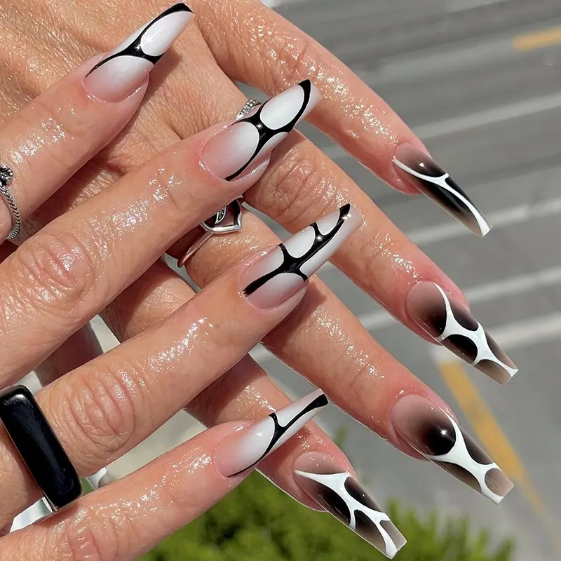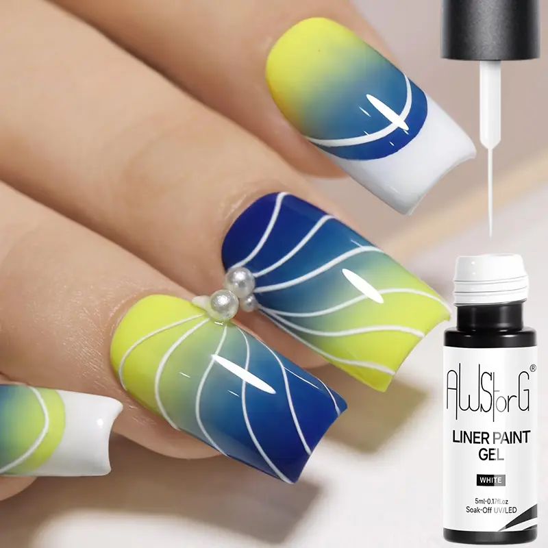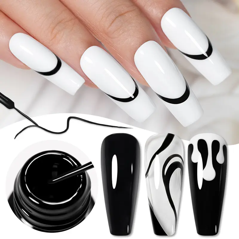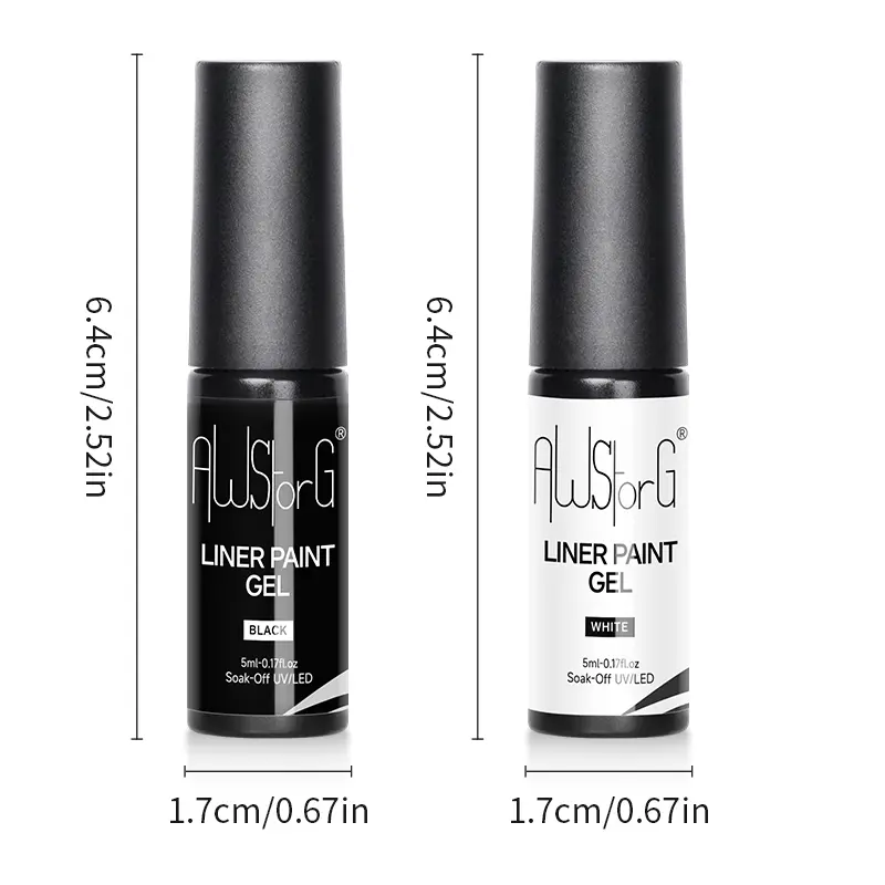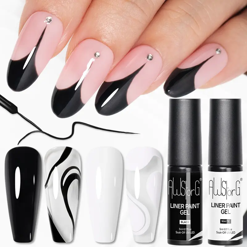 AWStorG 2Pcs/Set Black White Liner Gel Nail Polish Set, French Line Graffiti Painting Stripe Design, Ultra-fine Brush Head, Soak-Off Gel Varnish Girls Nail Art Gift