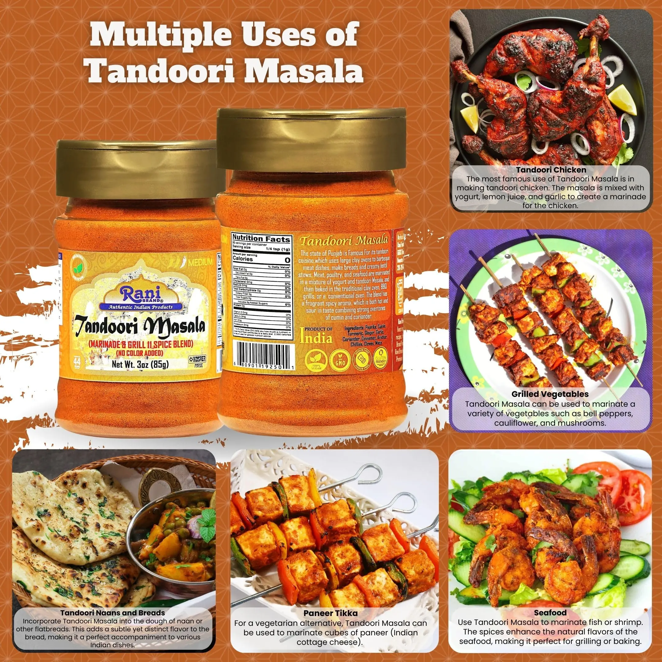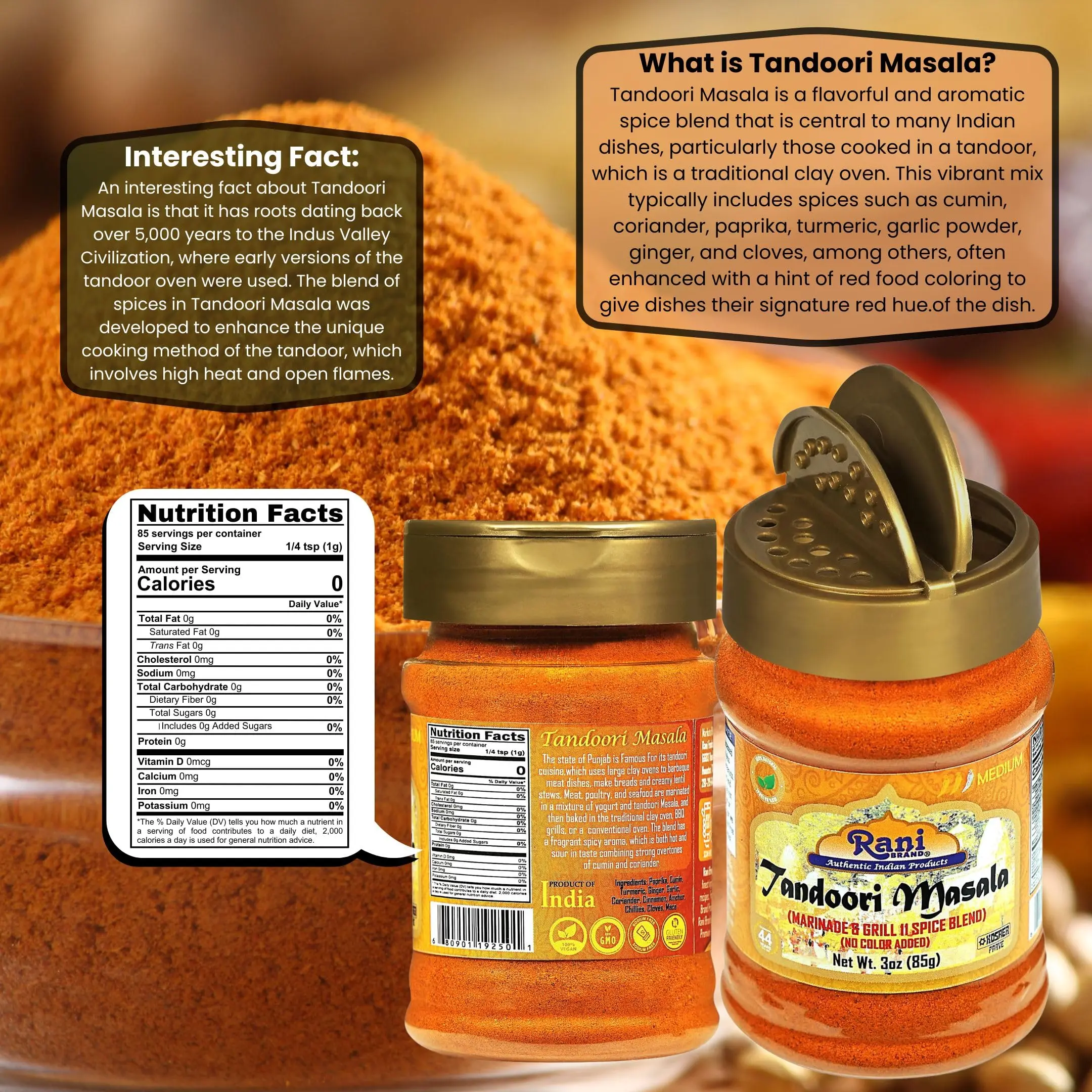 ·You'll LOVE our Tandoori Masala by Rani Brand--Here's Why: 100% Natural, Non-GMO, No Preservatives, Vegan, Gluten Friendly PREMIUM Gourmet Food Grade Spice.