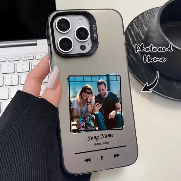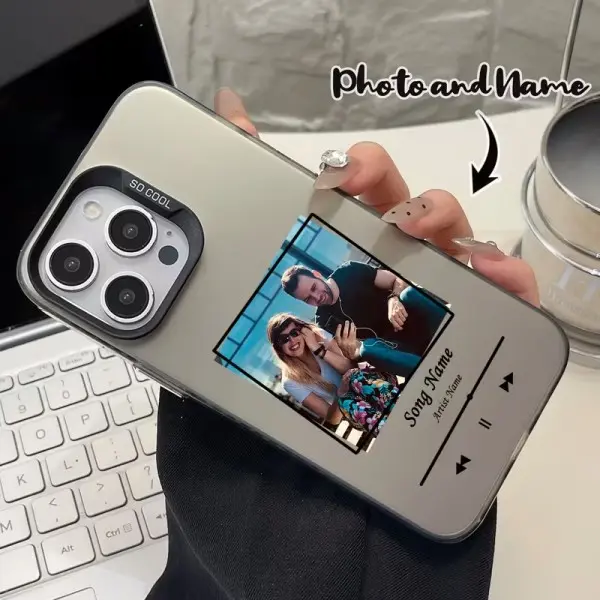 Tired of generic phone cases that feel cheap? Upgrade your phone with a custom silver music player case—premium design! Upload your favorite photos (couple shots, memories, album covers), customize song titles and artist names, and create a custom Spotify-style interface. Made from premium silver color material; resists fingerprints, scratches, and drops; thin and lightweight for a snug fit; provides full lens protection. Perfectly fits Apple iPhone 12–17 series. A thoughtful high-end gift for loved ones, friends, and family—transform cherished memories into everyday luxurious companionship!