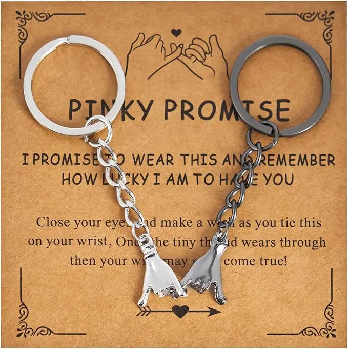 Pinky Promise Matching Keychains for Couples Valentines Day Anniversary Galentines Gifts for Him Her Boyfriend Girlfriend Premium Quality Elegant Design