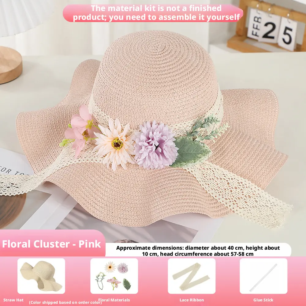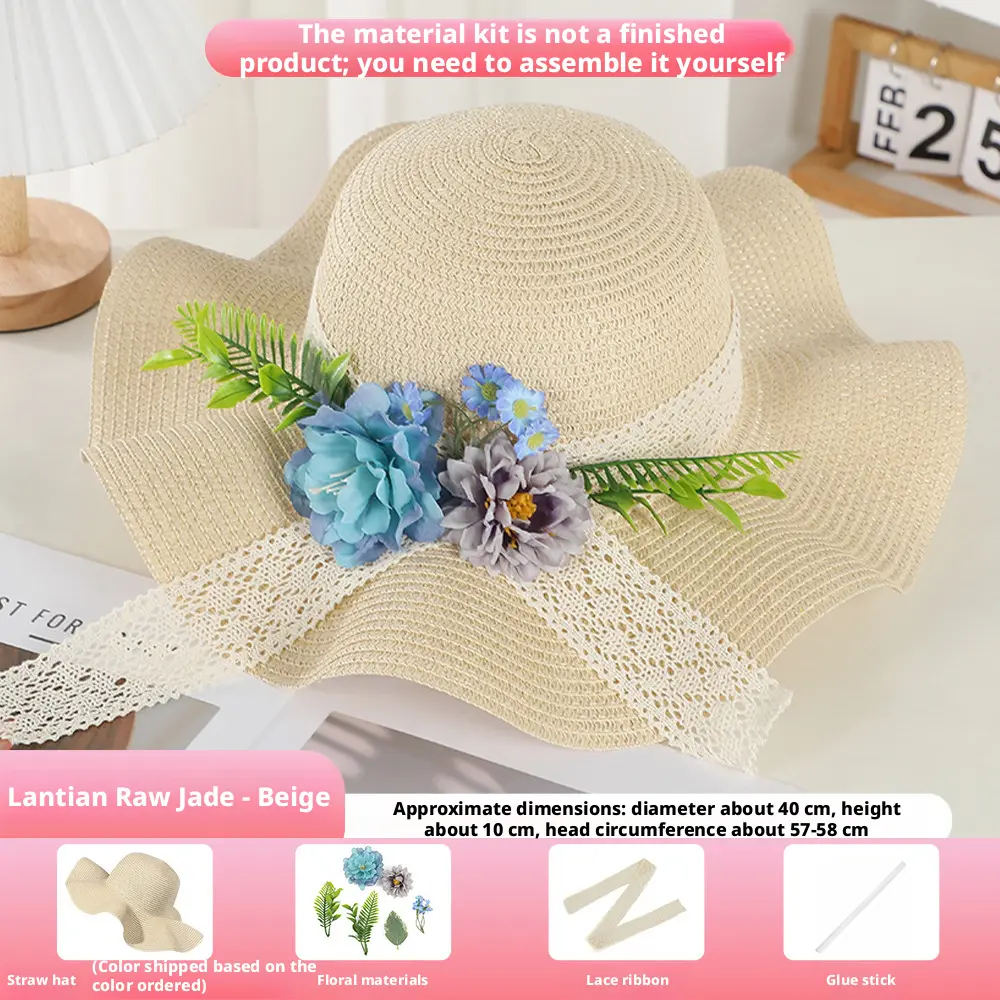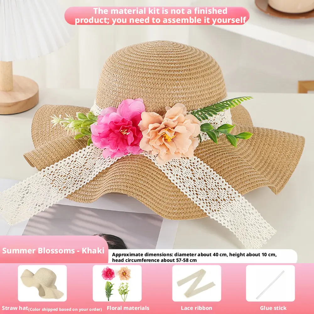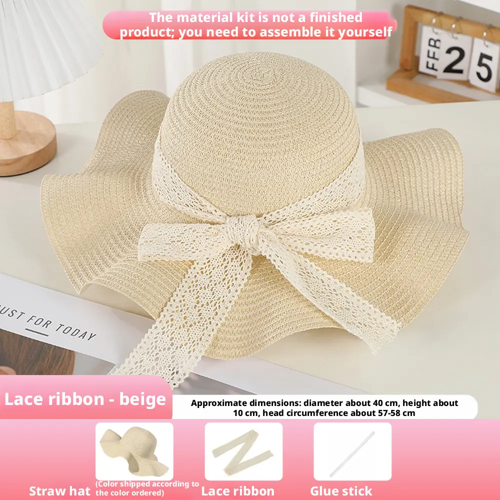 The product includes a straw hat/ a lace ribbon/ a glue stick