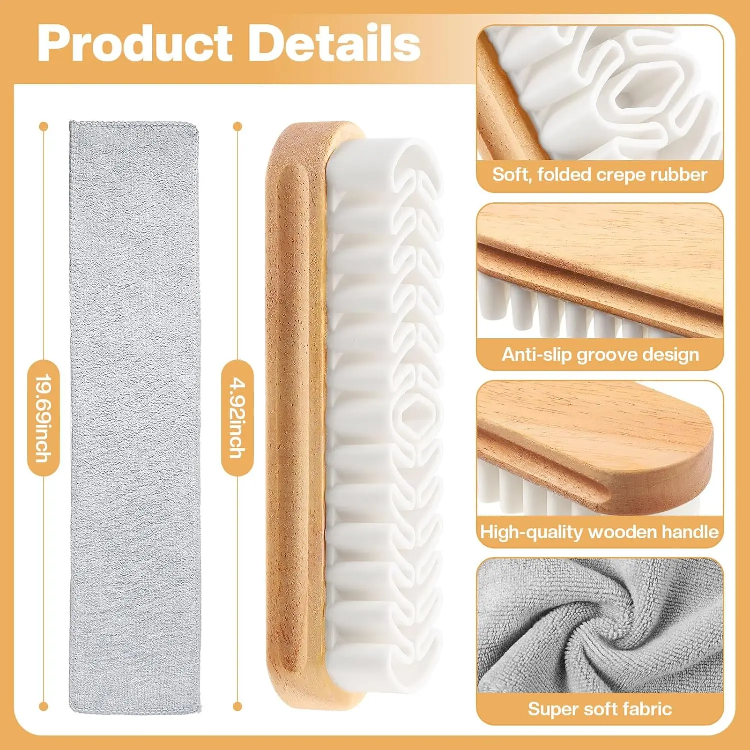 The crepe brush design gently lifts dirt, dust, and stains without damaging delicate materials, making it perfect for premium shoes.