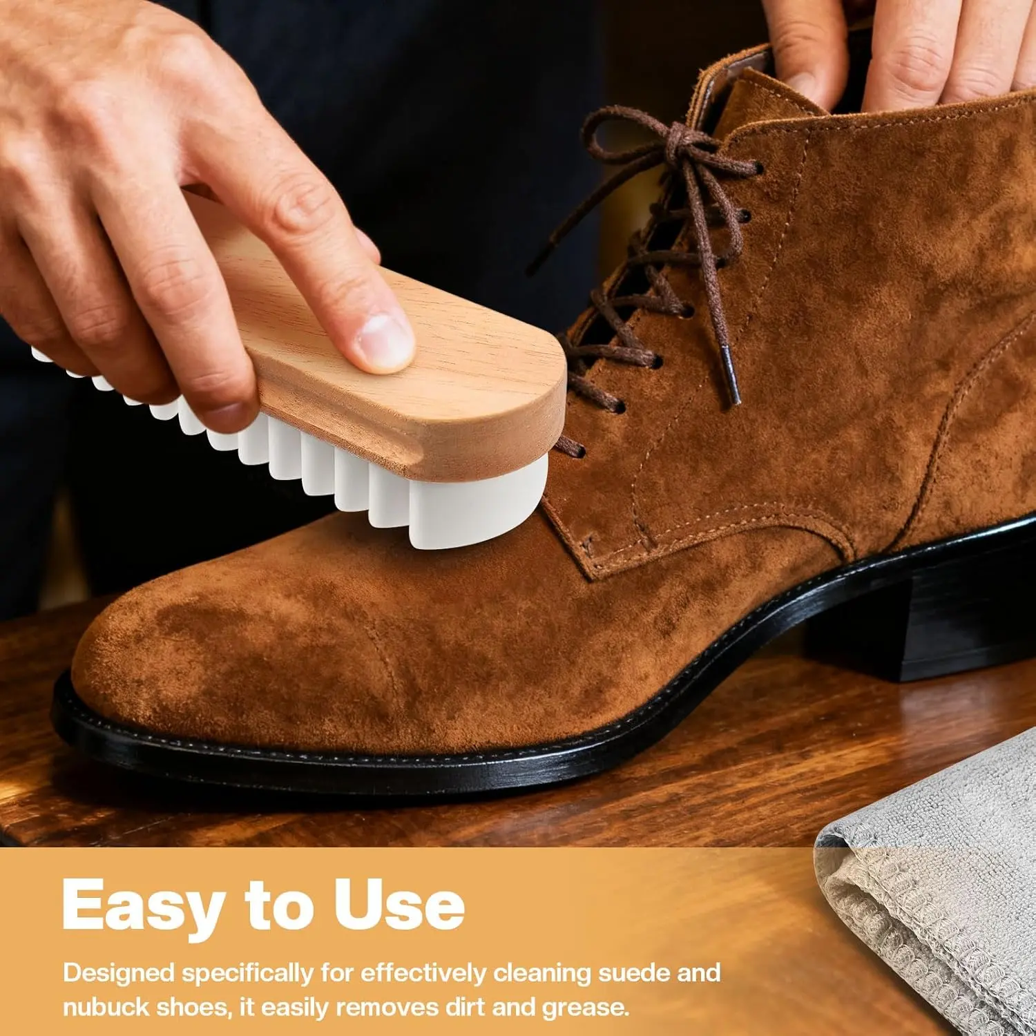 This 2-piece shoe care set includes a suede brush and cleaning cloth, giving you everything needed for effective cleaning and polishing.