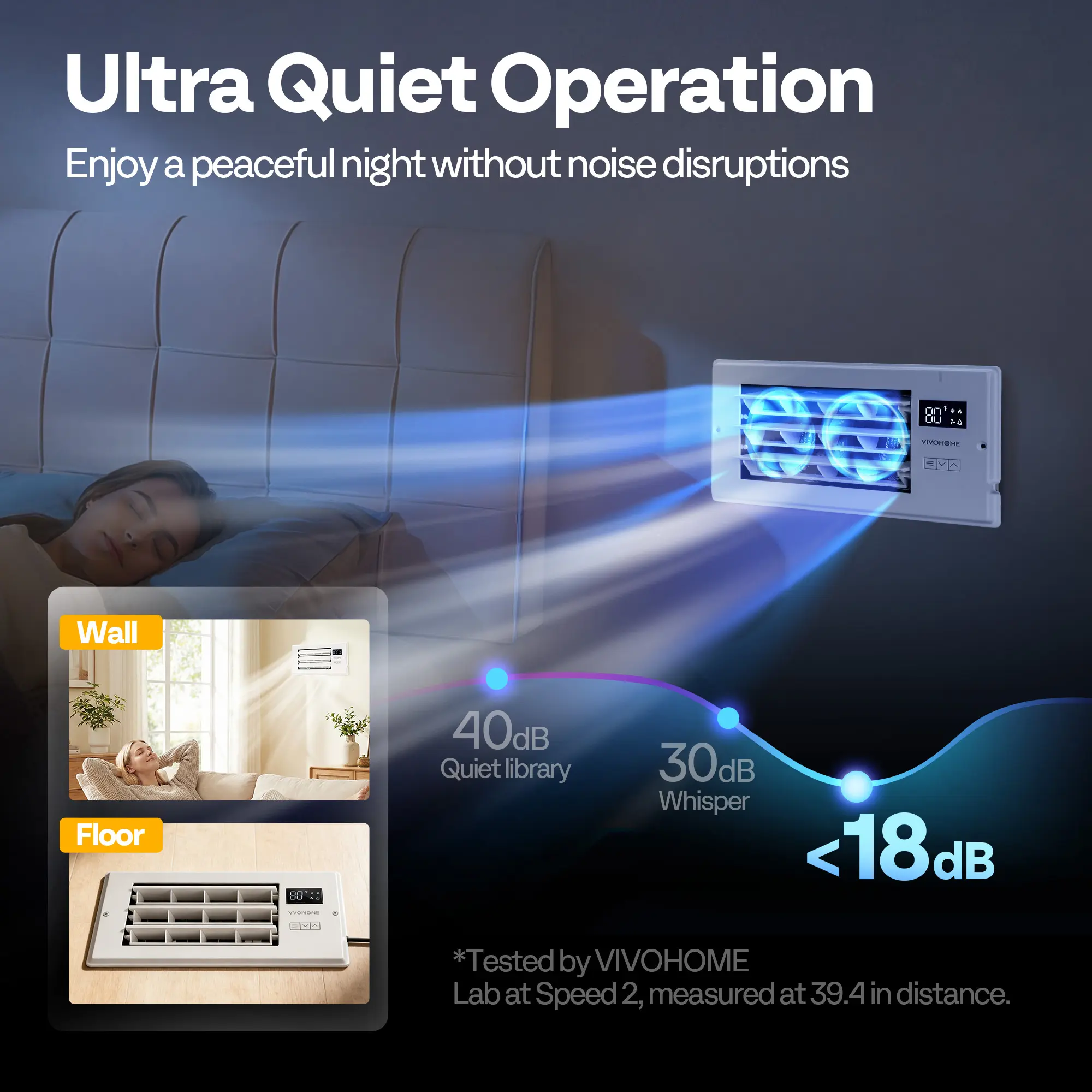 ·SMART TEMPERATURE CONTROL FOR ENERGY-SAVING : The VIVOHOME Register Booster Fan improves airflow from HVAC vents; The built-in thermostat turns the fan on/ off automatically based on your preset settings