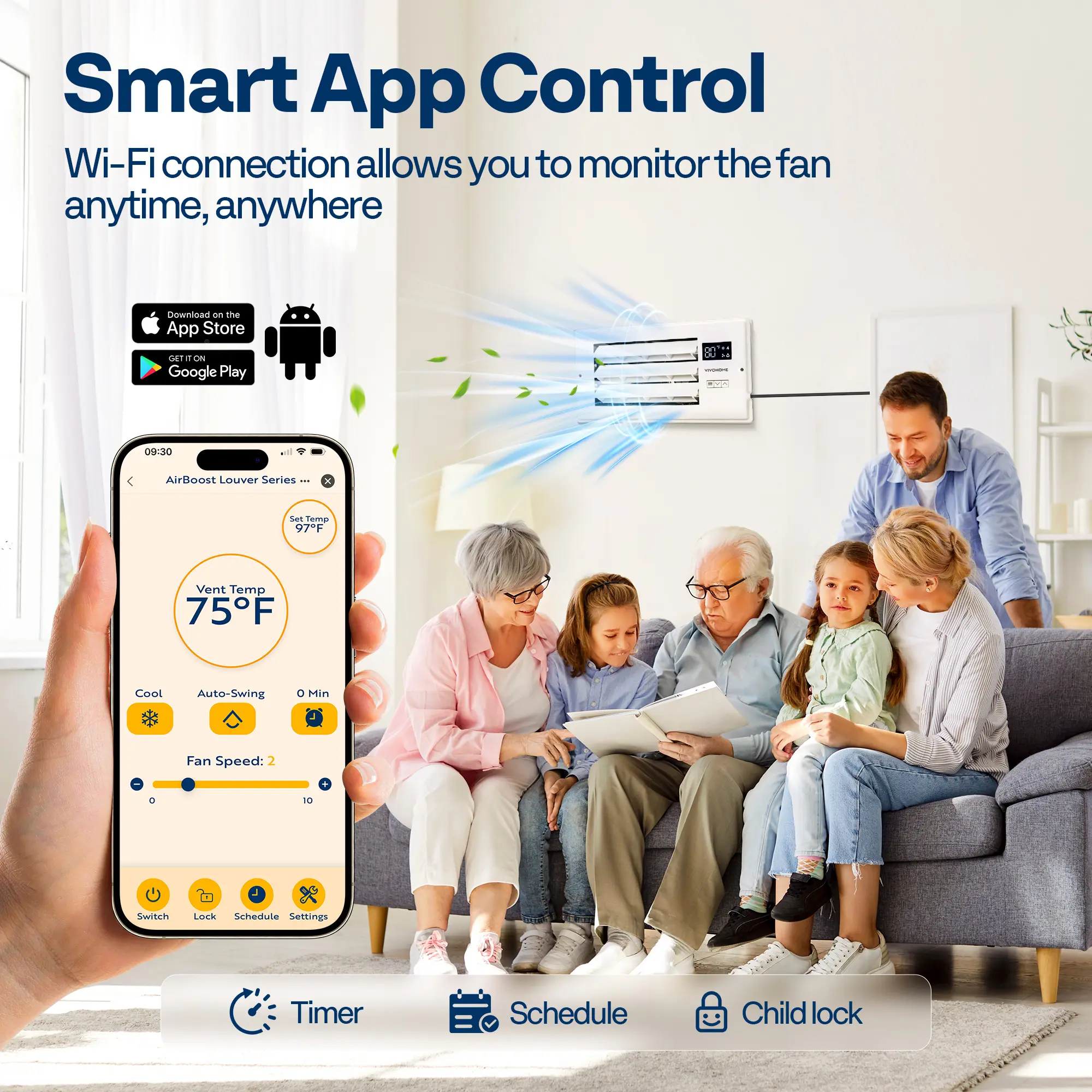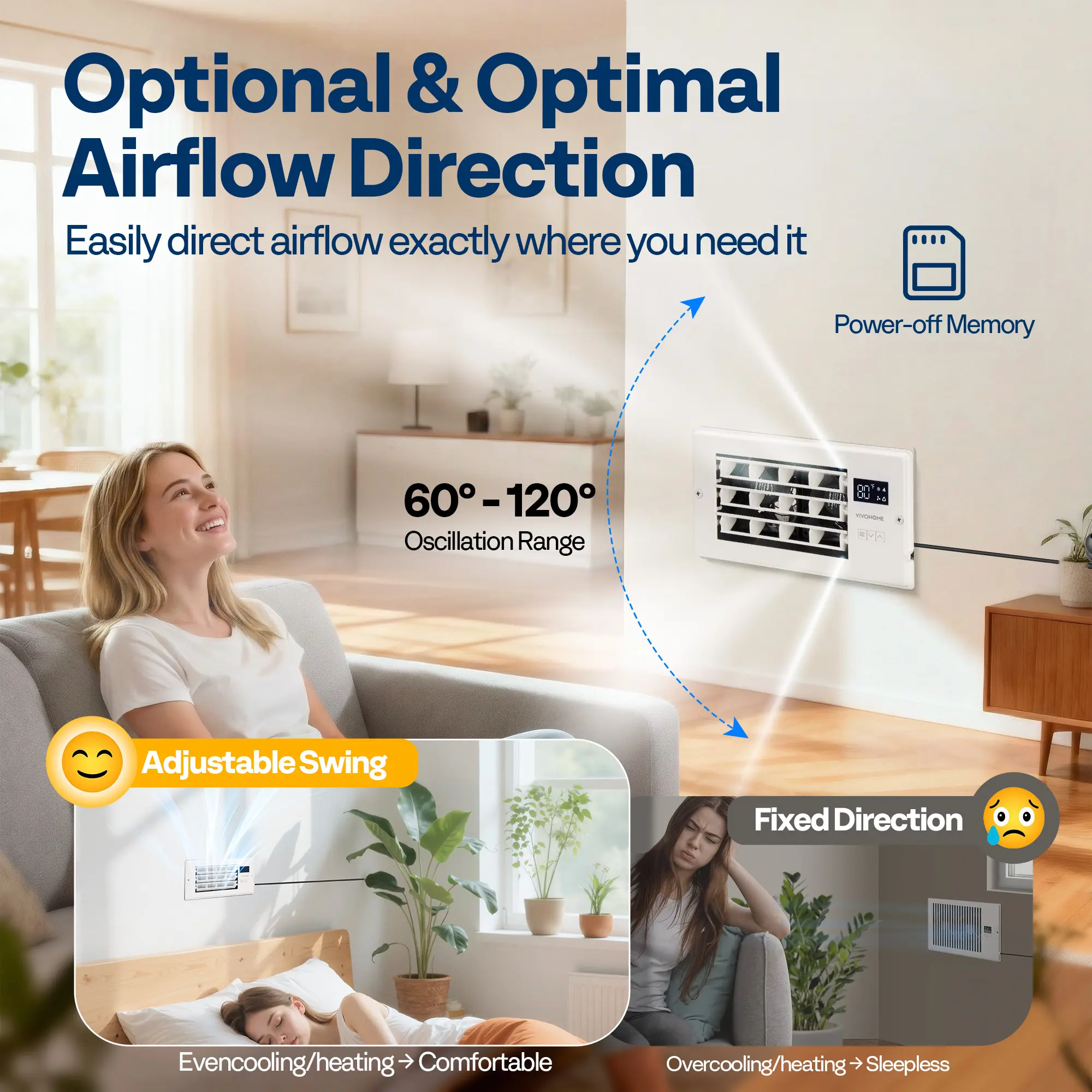 ·PERSONALIZE YOUR BREEZE: Direct airflow precisely with adjustable louvers (60°-120°) or opt for auto-swing for full room coverage; Even at rest, keep louvers open for ventilation, or closed to lock in treated air and savings