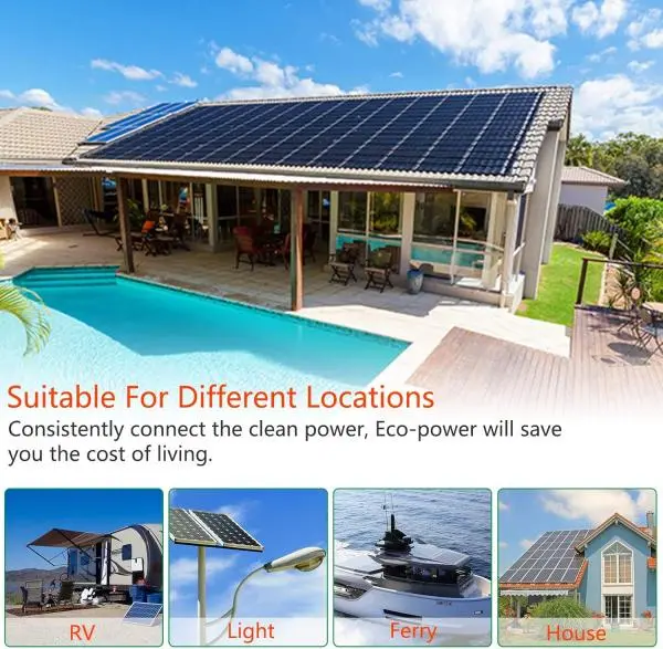 ·Simple Plug-and-Play: The MC4 connectors provide a secure, snap-in connection that is both safe and easy to use. No special tools or wiring knowledge required—just plug it in and go.
